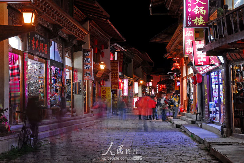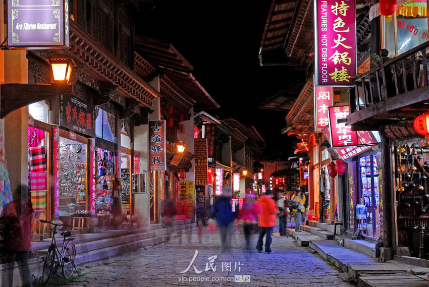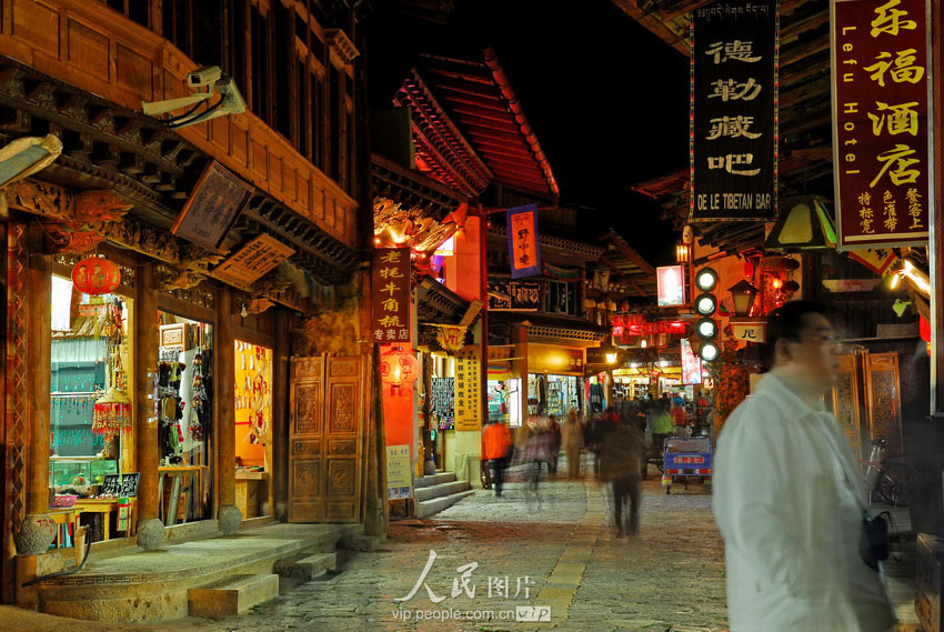 Photo taken in October 2009 shows the flourishing commercial street of Shangri-la’s ancient town Dukezong. Dukezong, meaning “town of the moon” in Tibetan, was built 1,300 years ago and became an important landmark on the Southern Silk Road. It became one of the most renowned resorts in Shangri-la, which is famous for its well-preserved ancient Tibetan dwellings.( vip.people.com.cn/ Wu Zongbao)