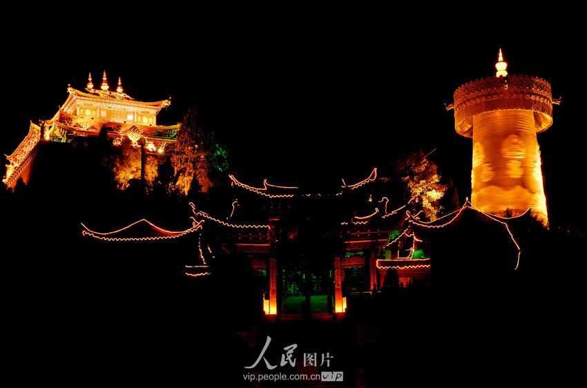 Night view of Shangri-la's ancient town before fire accident (1/4)