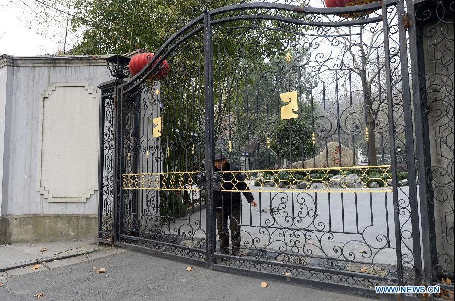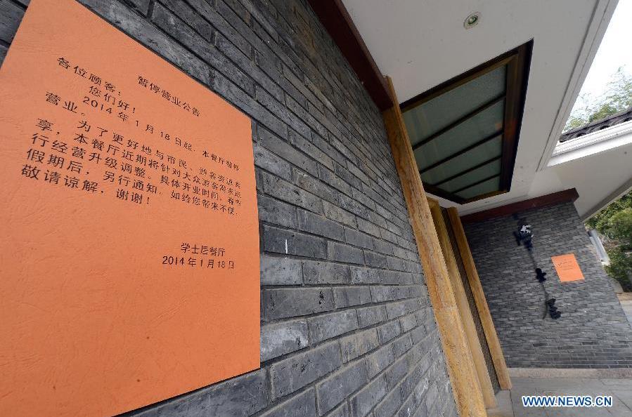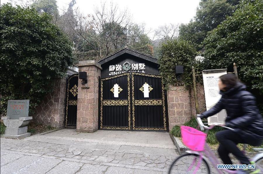Yongjinlou, a high-end club within West Lake park, is pictured in Hangzhou, capital of east China's Zhejiang Province, Jan. 18, 2014. Authorities of Hangzhou ordered ten high-end clubs in West Lake park to close on Jan. 17, with other fancy establishments in public park grounds to shut in the coming days. Five clubs including Xihuhui in West Lake, known for luxurious decorations, expensive meals and services, were shut down on Jan. 16, according to a statement from Hangzhou city government. The move targets to close all high-end clubs in West Lake and other historical cultural grounds, so scenic spots are used primarily by locals and tourists, the statement said. (Xinhua)