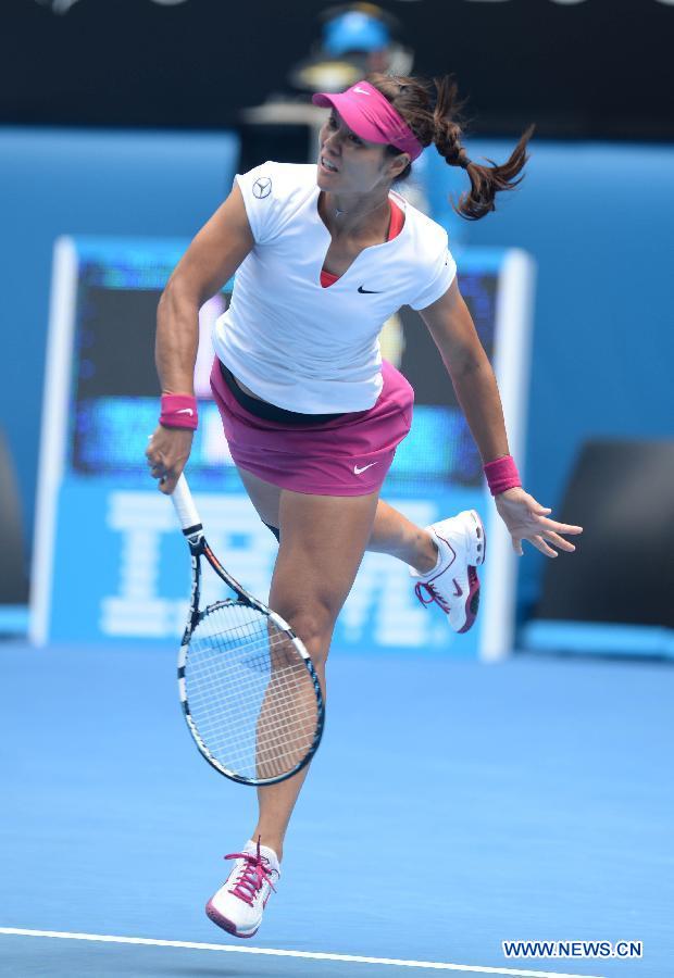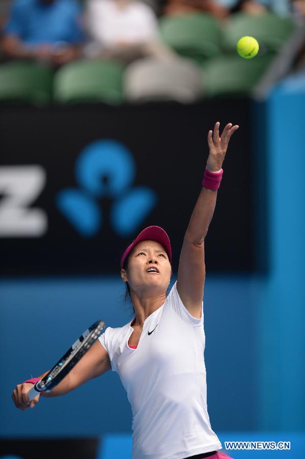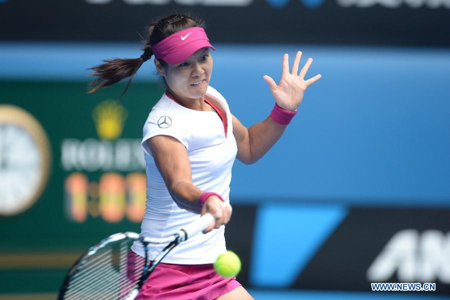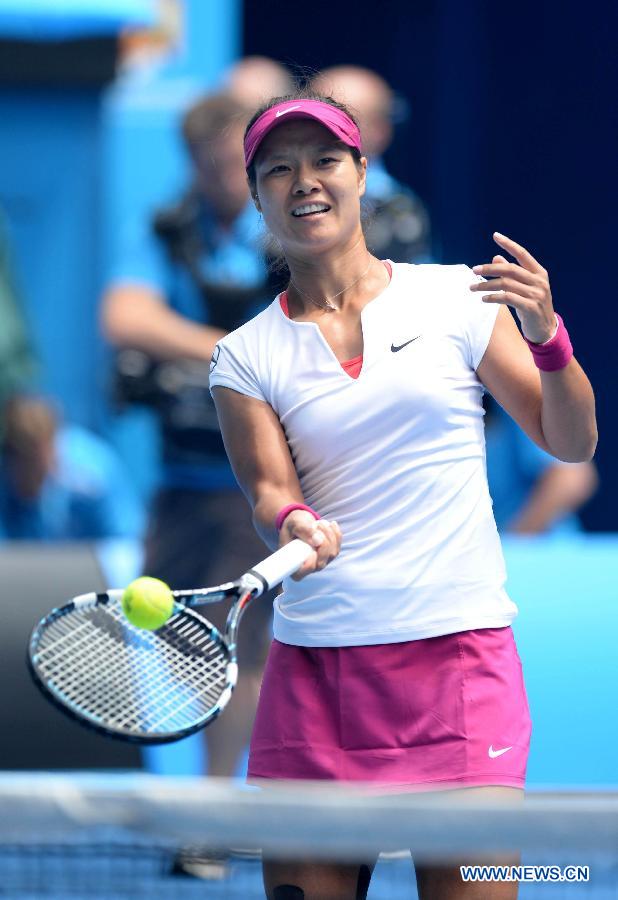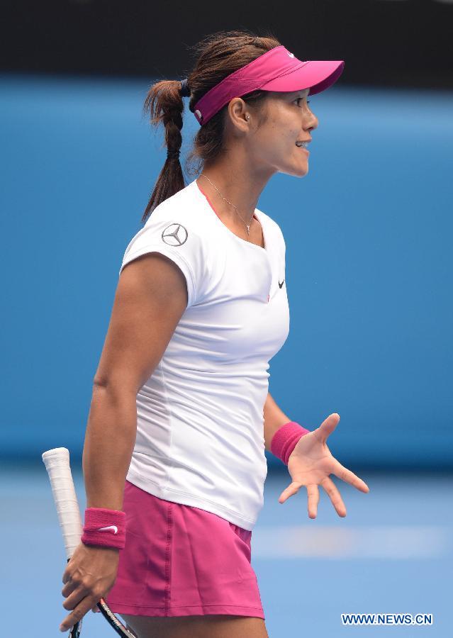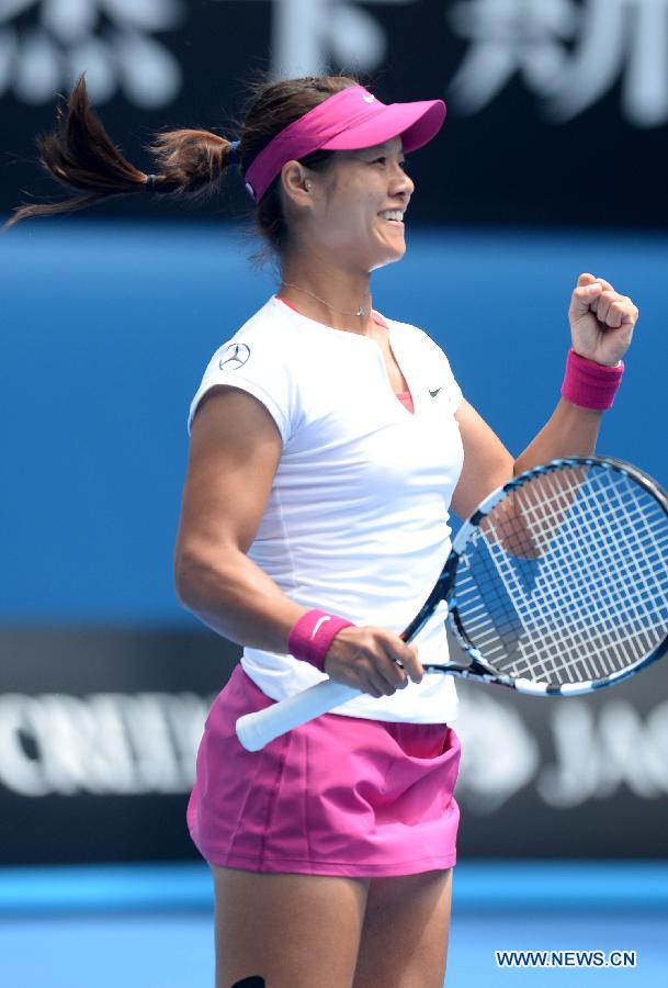 Li Na of China celebrates after winning women's singles quarterfinal match against Flavia Pennetta of Italy at Australian Open tennis tournament in Melbourne, Australia, Jan 21, 2014. Li Na won 2-0. (Xinhua/Li Jundong)