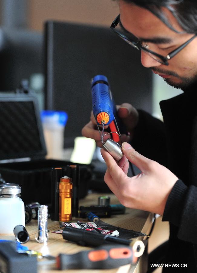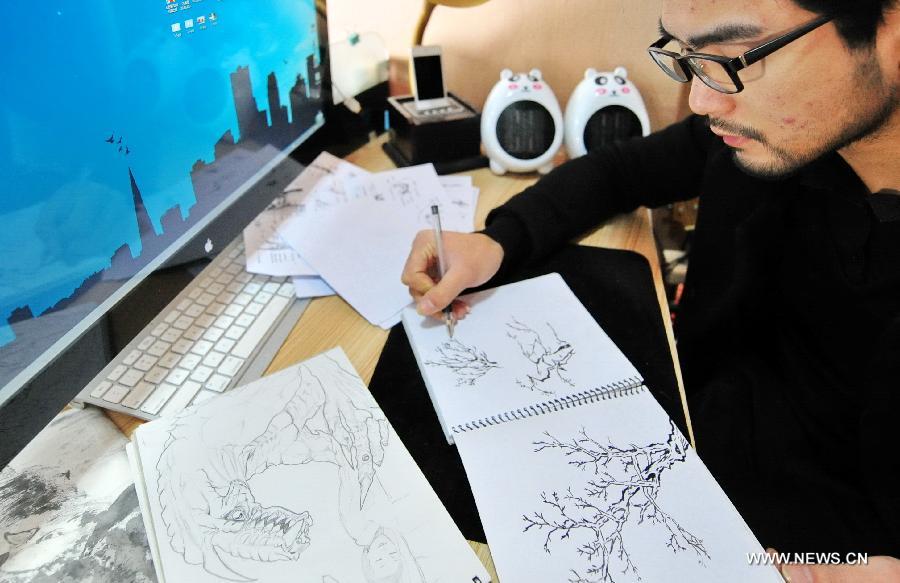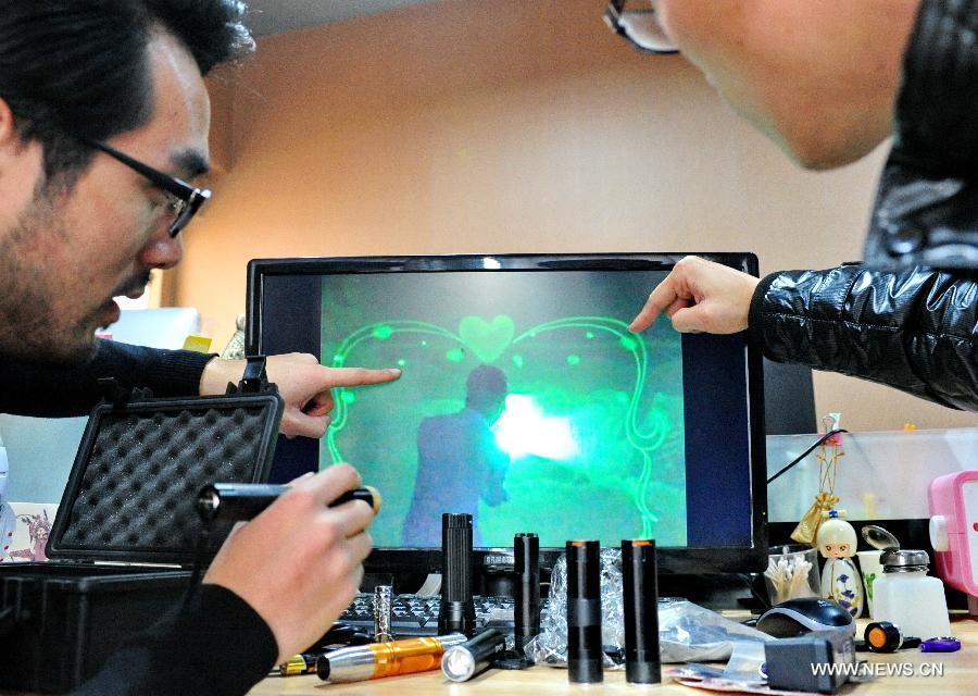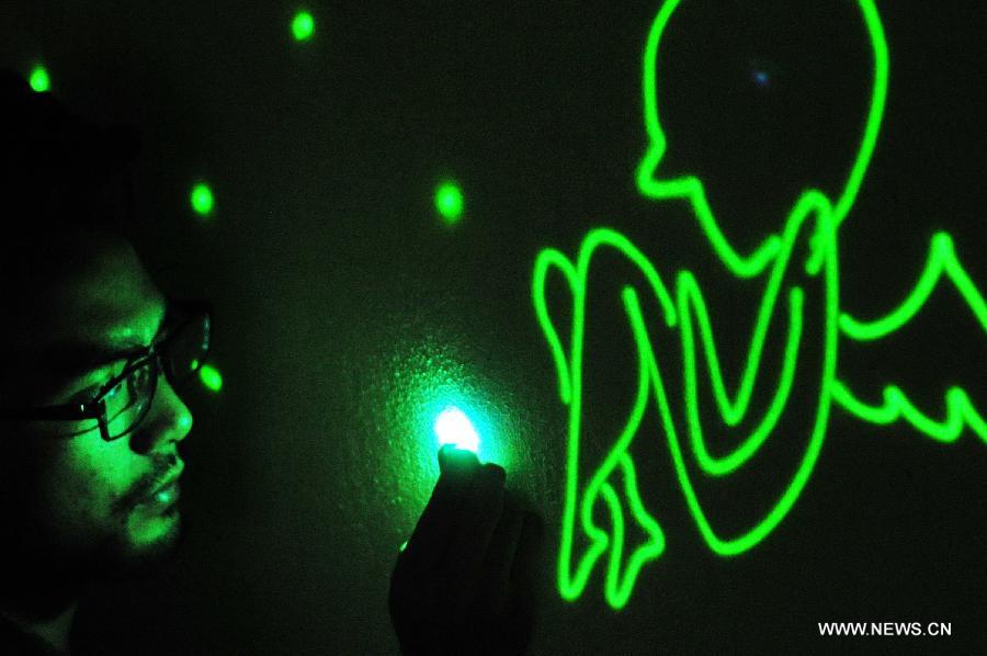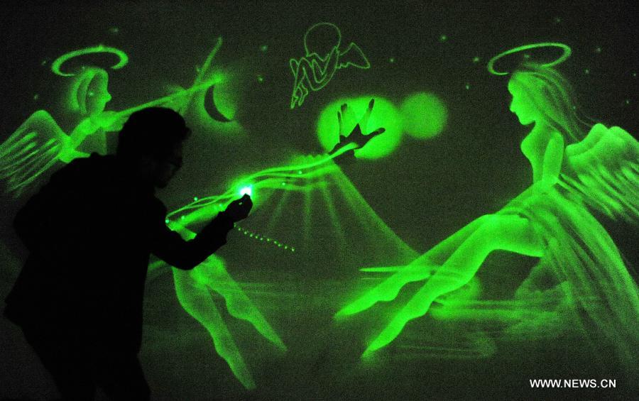 Photo taken on Jan. 21, 2014 shows one of Liu Hongxin's light paintings in Fuzhou, capital of southeast China's Fujian Province. An electrical engineering major, Liu Hongxin fell in love with the art of light painting in summer 2010. Liu was still a university student back then and, with his own effort, learned light painting from video clips featuring foreign artists' performances. After more than a year's practice, the self-taught light painter made his debut in October 2011, and has held nearly 100 performances eversince. In December 2013, Lin won acclaims for his outstanding performance in the hit talent show "China's Got Talent". (Xinhua/Lin Shanchuan)