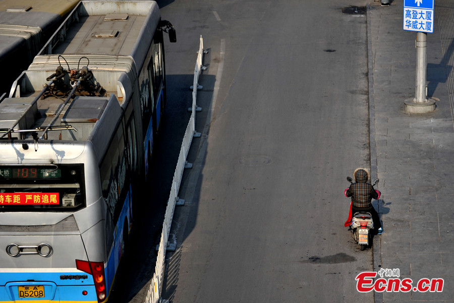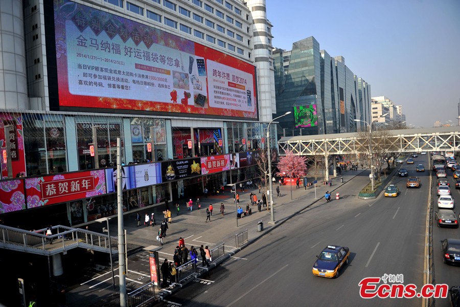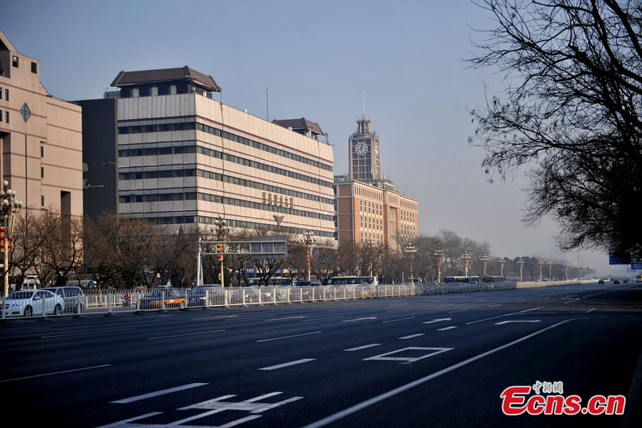With more and more college students, company employees and migrant workers leaving Beijing and returning to hometowns for Spring Festival, business areas, shopping streets and public traffic tools in the capital city see less people. [Photo: Chinanews.com / Jin Shuo]