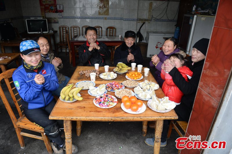 Jia Yanmei, a girl from Nanchong of southwest China's Sichuan province, spends 17 days riding home from Beijing for Spring Festival. Jia left Beijing on Jan. 12 and arrived at home on Jan.28. She now works as an English teacher at a training center in Beijing. [Photo/CFP]