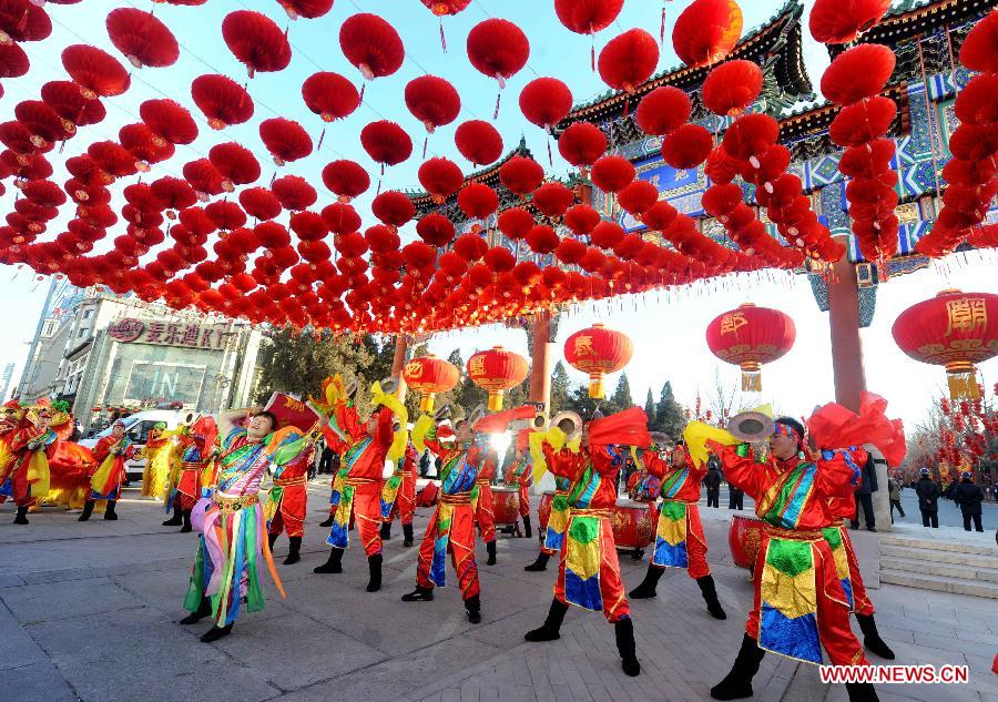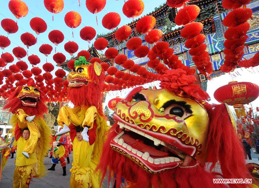 People visit the temple fair in Ditan Park in Beijing, capital of China, Jan. 30, 2014. The 29th Ditan Park temple fair open to the public on Thursday. (Xinhua/Gong Lei)