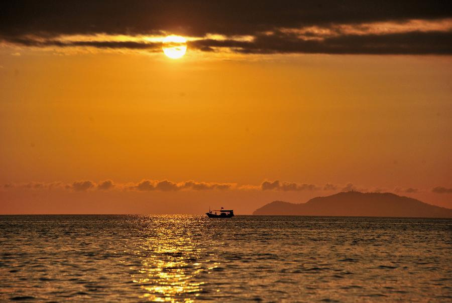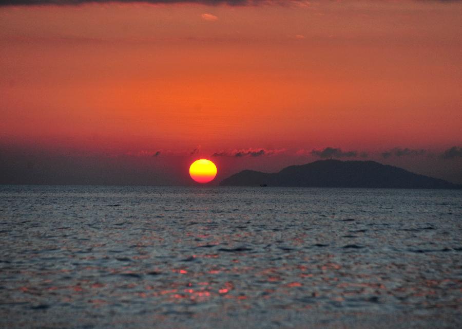 Photo taken on Feb 1, 2014 shows the sunset scenery in Sanya, south China's Haina province. (Xinhua/Zhang Yongfeng)