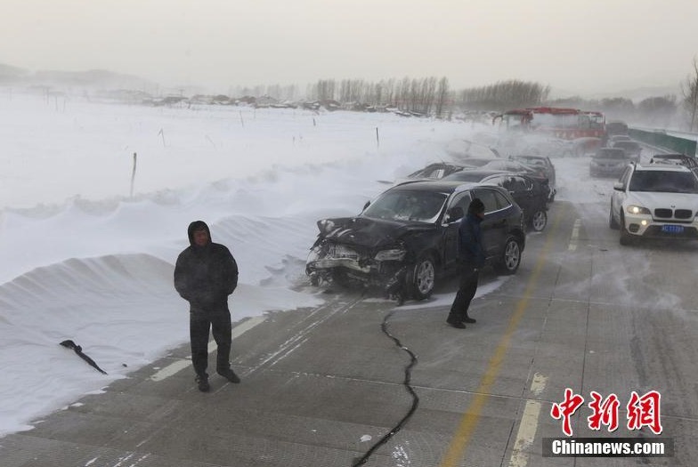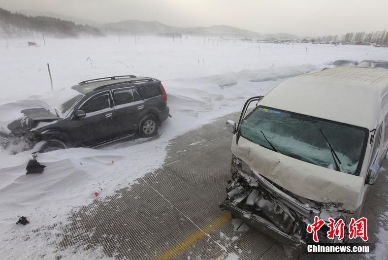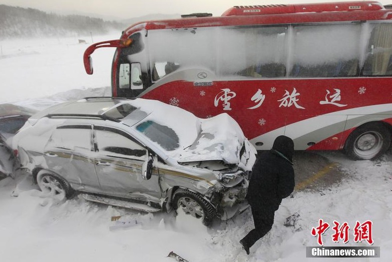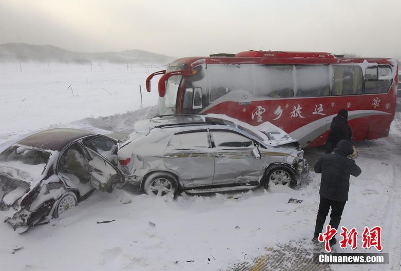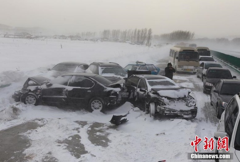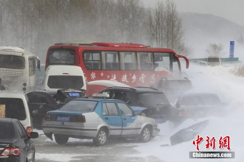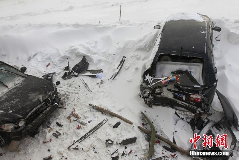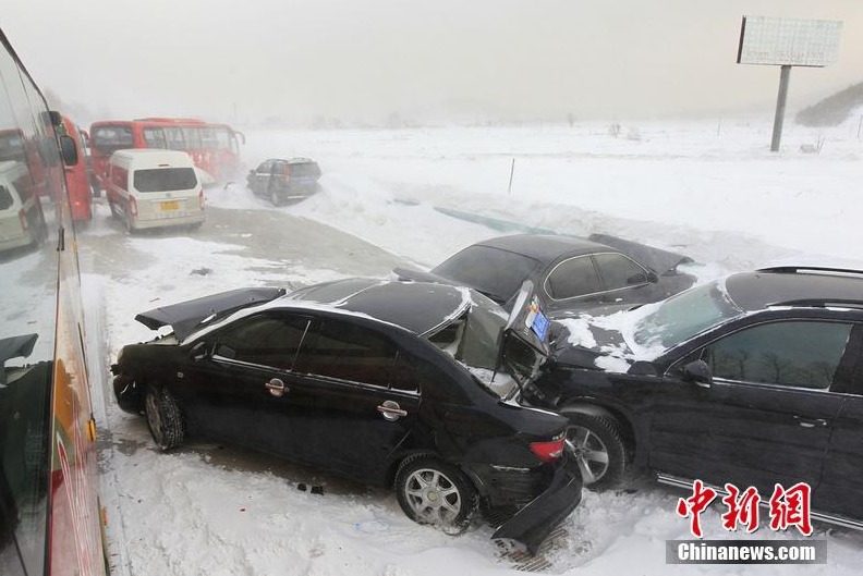 Photo taken on Feb. 2 shows that a series of severe car accidents happened in Heilongjiang Province, NE China. Days of heavy snowfall made driving on winter roads a nightmare for many as reports of accidents came in continuously.