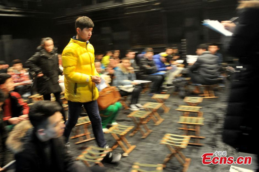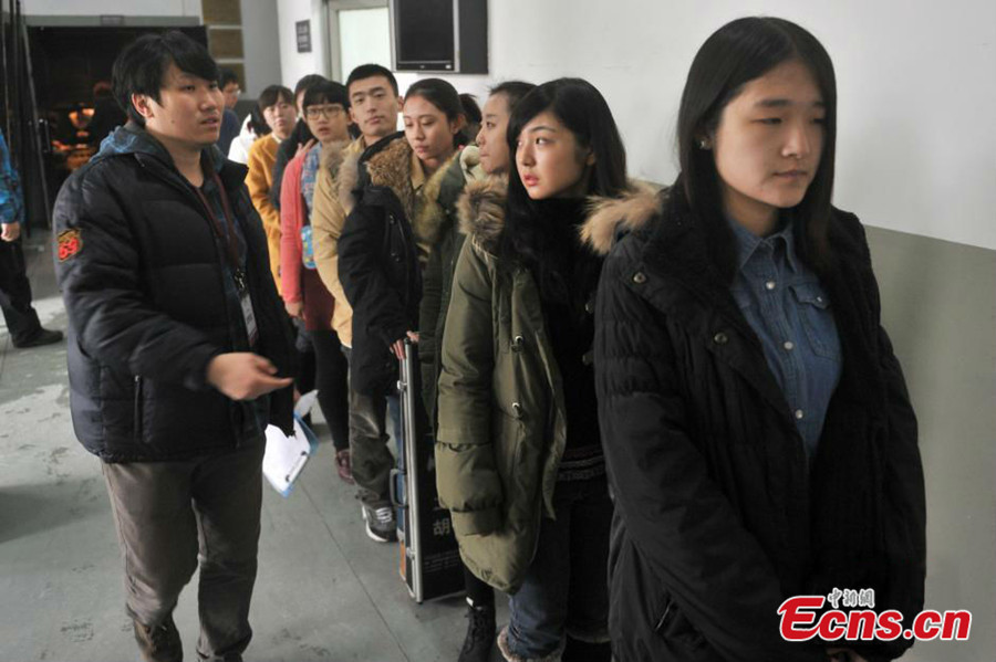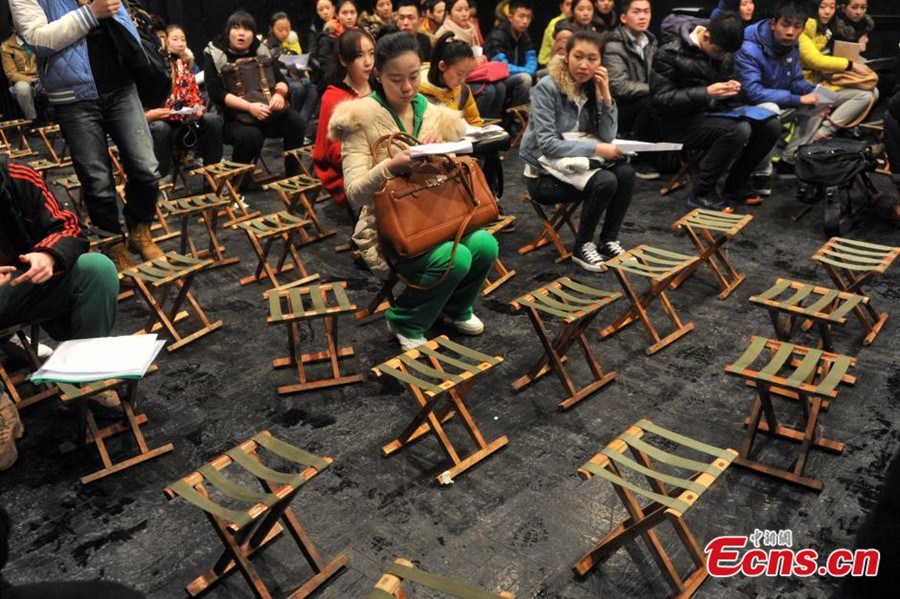 An examinee waits for the entrance exam at the Central Academy of Drama in Beijing on Feb.7, 2014. A total of 30254 examinees registered for the exam, competing for 595 vacancies to be enrolled. [Photo: China News Service / Han Haidan]