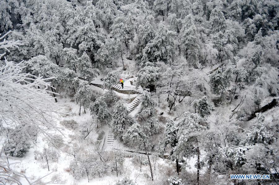 Photo taken on Feb. 9, 2014 shows the snowy landscape in Lushan Mountain, east China's Jiangxi province. (Xinhua/Zhou Ke)