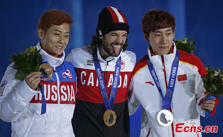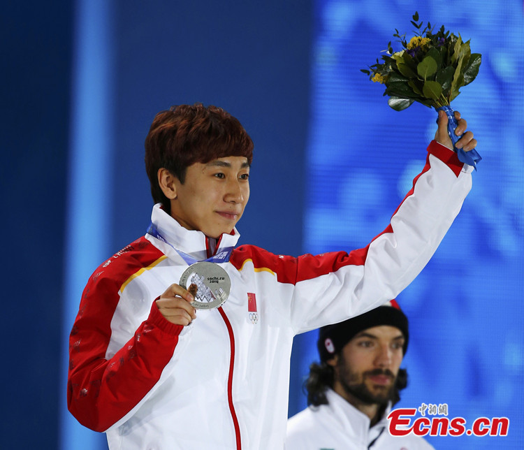 China's Han Tianyu, 17, wins a silver medal in men's 1,500m short track speed skating during the 2014 Sochi Winter Olympics on February 10, 2014. It's China's first medal at the Sochi Winter Olympics. [Photo/ Reuters]