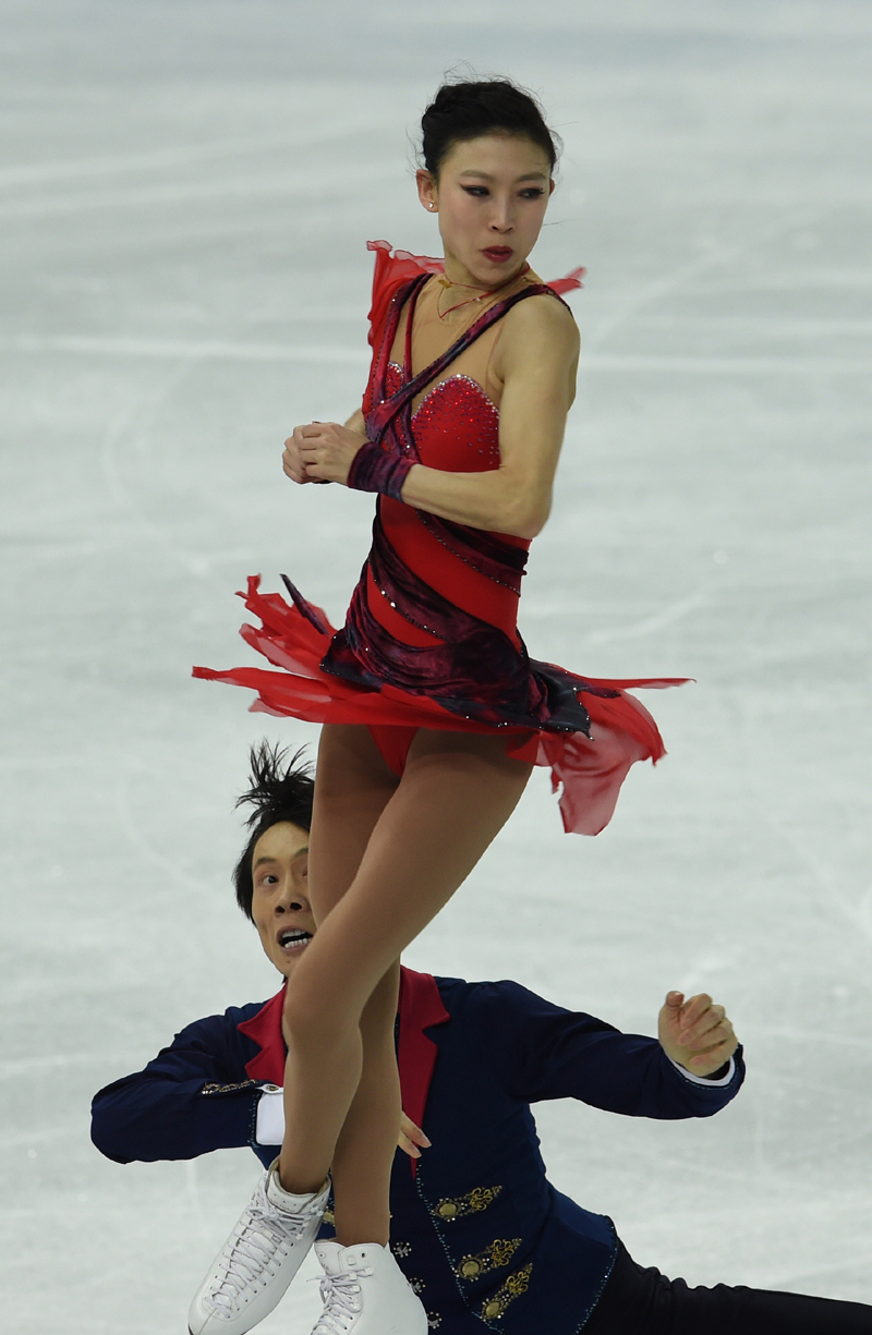 Chinese figure skating veterans Pang Qing and Tong Jian narrowly missed a medal at their fourth Winter Olympics on Wednesday, but they were satisfied to end their career on the Olympic ice, and looking forward to a new life as a happy couple. The two-time world champions, having been training together since 1993, earned 136.58 points for their free skate and totaled 209.88 for the fourth place. [Photo/Xinhua]