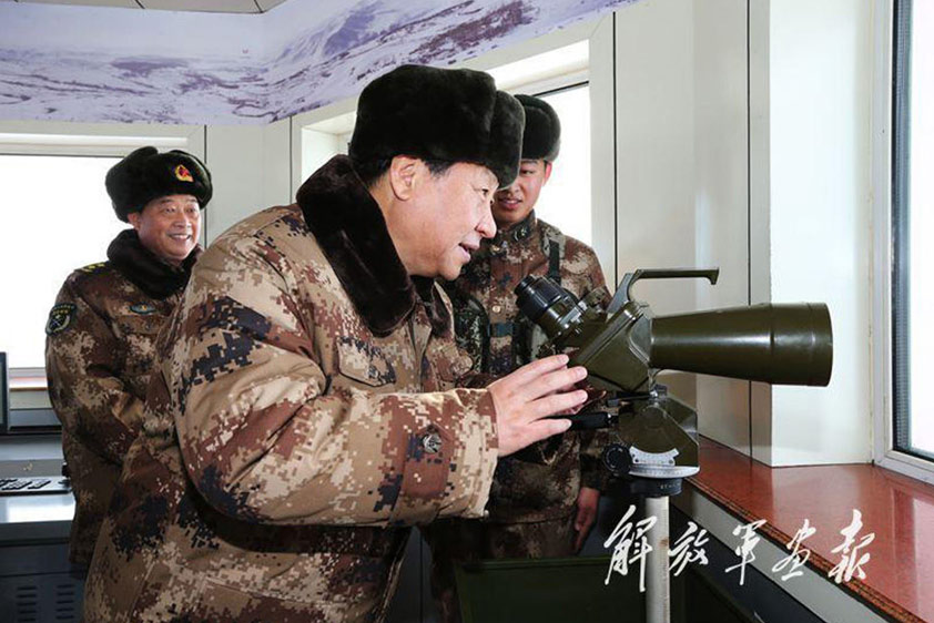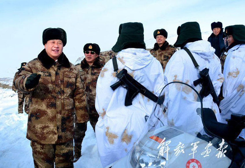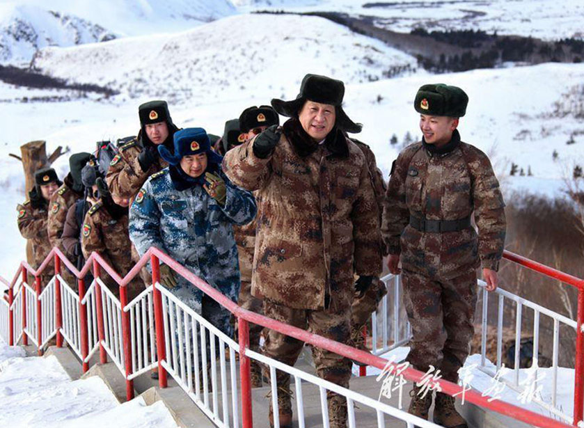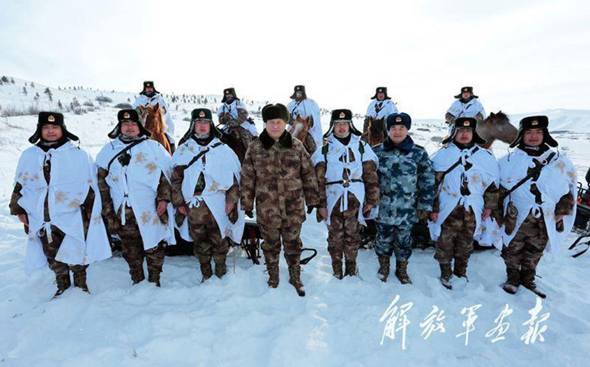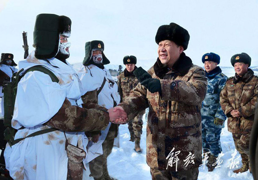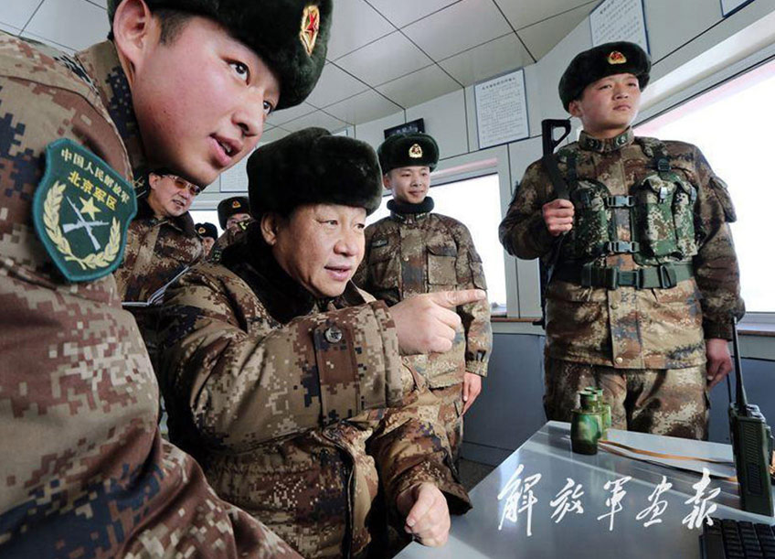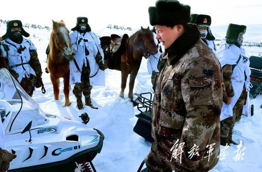 The official website of PLA Daily posted a series photos never published before on February 16, 2014, showing Chinese President Xi Jinping making an inspection visit to the garrison troops based in the Inner Mongolia Autonomous Region on January 26, 2014. Xi extended new year greetings to the soldiers who patrol in chilly snowy weather at 30 degrees Celsius below zero, inspected their daily work, had lunch with soldiers at the dinner hall of the troops and visited their dorm. [Photo: PLA Daily]
