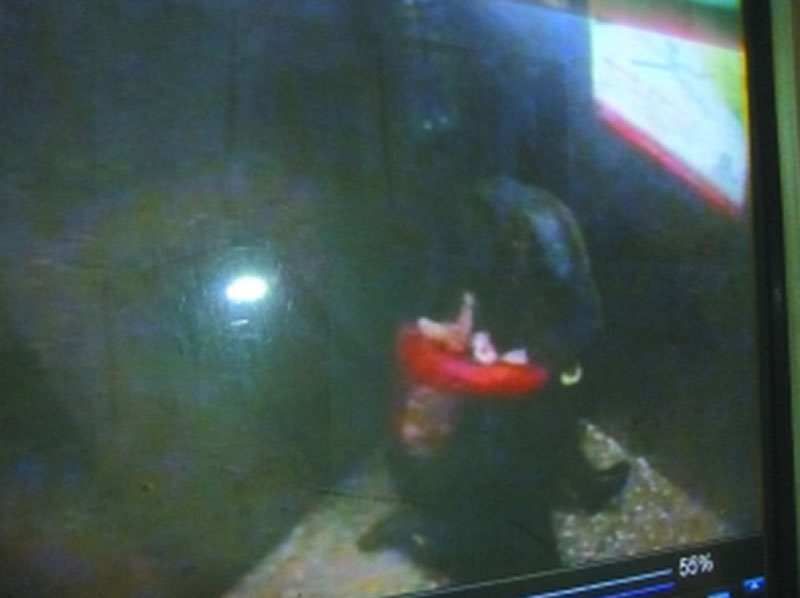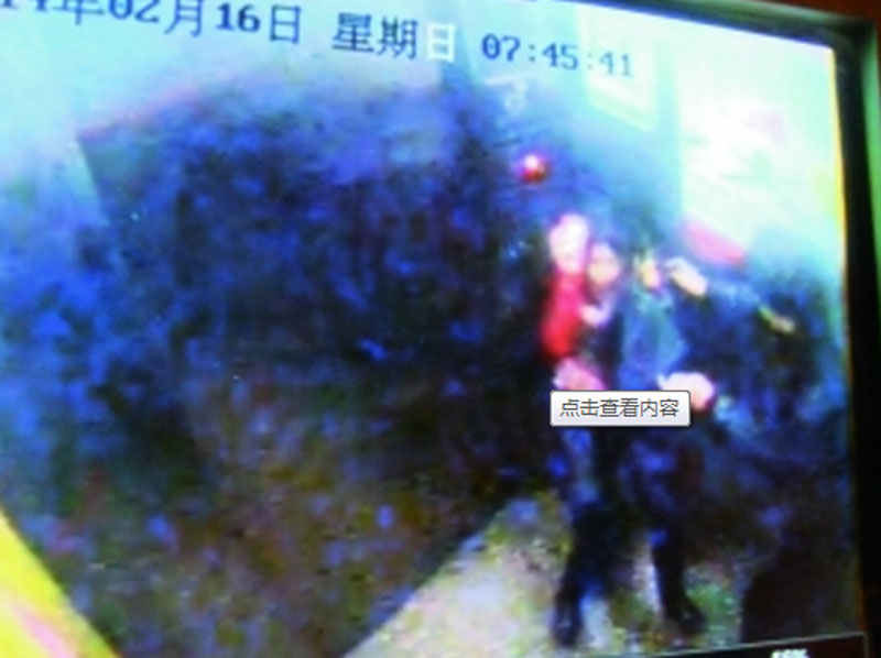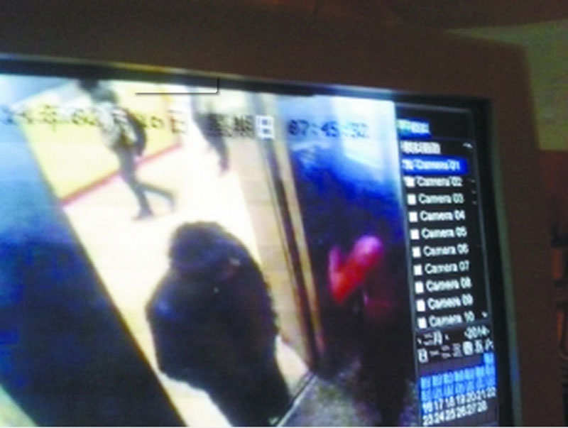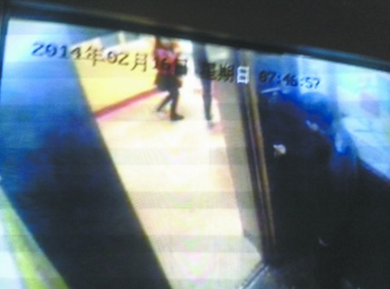 The video clip shot by a camera shows a man follows a woman into an elevator of a building in Lanzhou city at 7:45 on Feb 16, 2014. The woman surnamed, Hou, teacher of a private educational enterprise, was assaulted and her throat was cut by the man in the elevator, Lanzhou Morning News said. Then Hou climbed out of the elevator and was sent to a local hospital. She is out of danger at present. [Photo: Lanzhou Morning News]