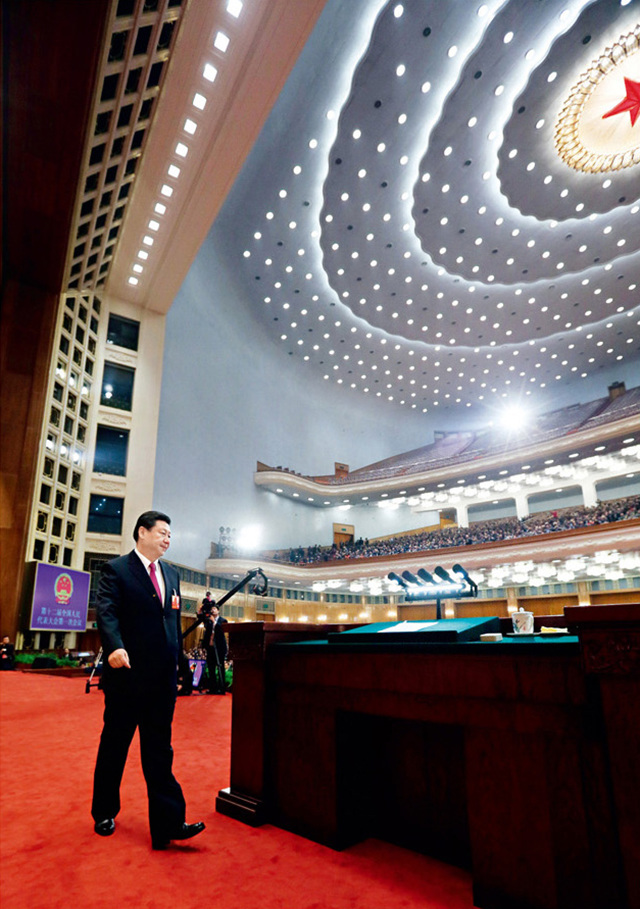 At the Fourth Plenary Session of the First Meeting of the Twelfth National People's Congress held on March 14, 2013, at the Great Hall of the People in Beijing, Xi Jinping was elected president of the People's Republic of China and chairman of the Central Military Commission of the People's Republic of China. On March 17, Xi gave a keynote speech at the closing ceremony of the First Meeting of the Twelfth National People's Congress. by Lan Hongguang/Xinhua [More stories about Xi Jinping]