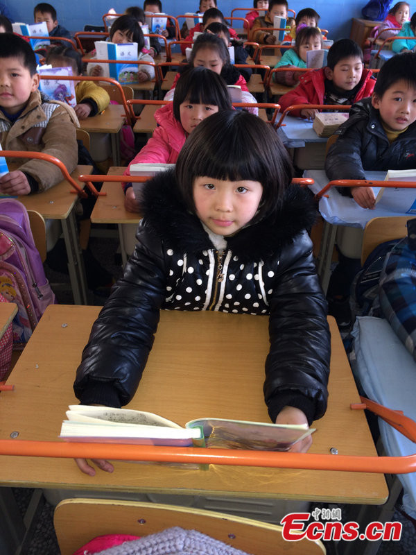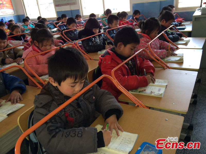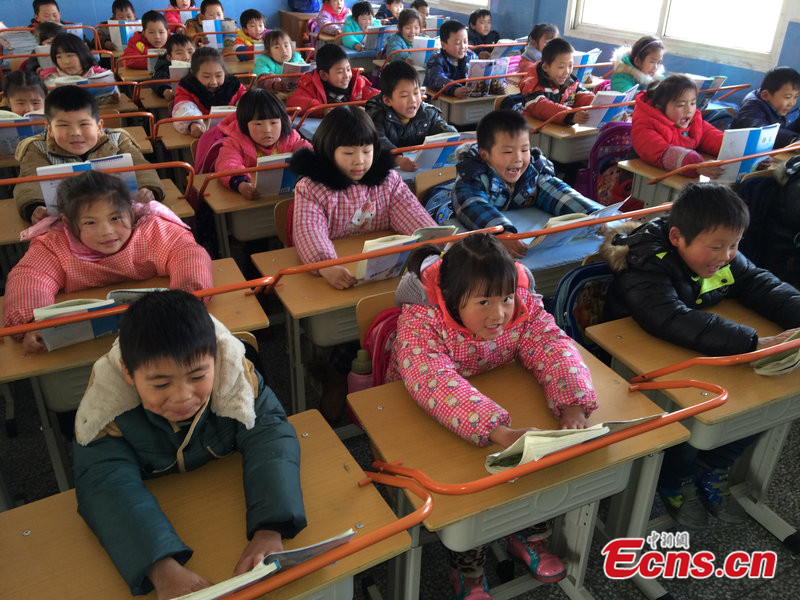 Students use new desks, installed with railings, to prevent nearsightedness at Zhanglin Primary School in Xinzhou district of Wuhan, central China's Hubei province as the new semester just began. [Photo/CFP]