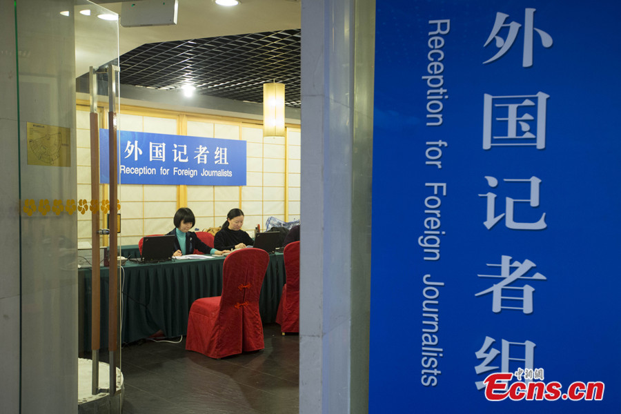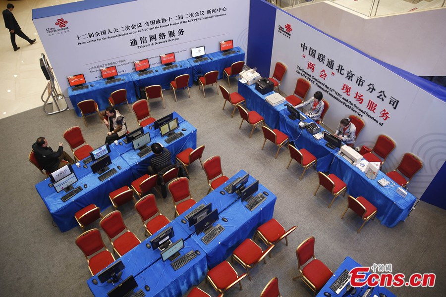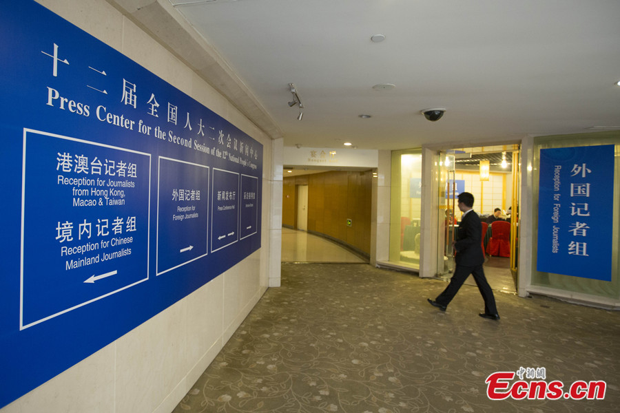 The Press Center for the Second Session of the 12th National People's Congress (NPC) and the Second Session of the 12th Chinese People's Political Consultative Conference (CPPCC) National Committee opens in Beijing on Feb. 26, 2014. [Photo: China News Service / Sheng Jiapeng]