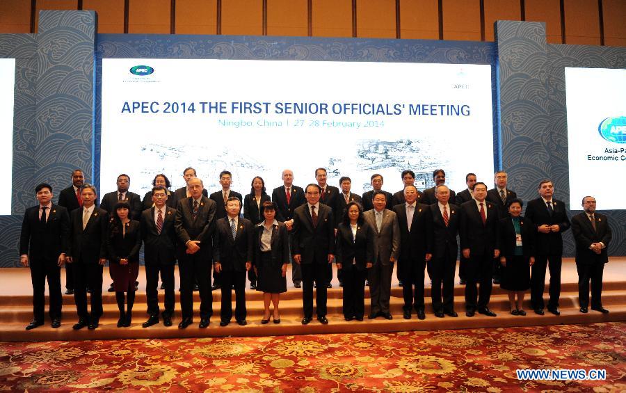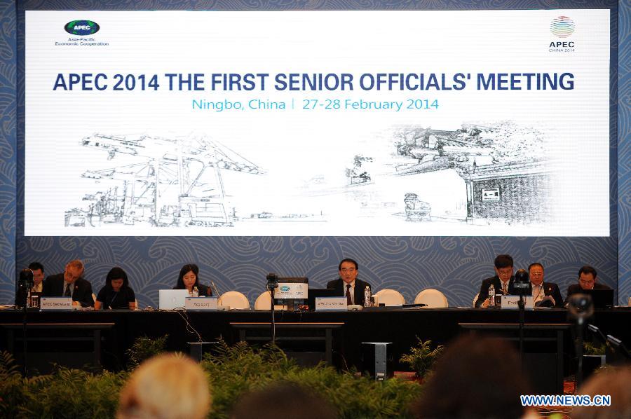 The two-day APEC 2014 first senior officials' meeting is opened in Ningbo, a port city in east China's Zhejiang province, Feb 27, 2014. (Xinhua/Ju Huanzong)