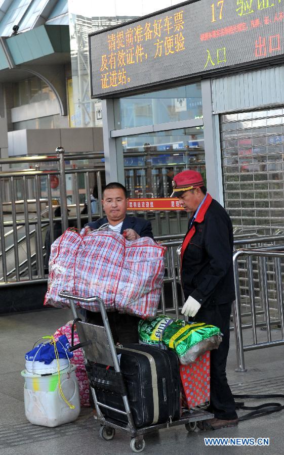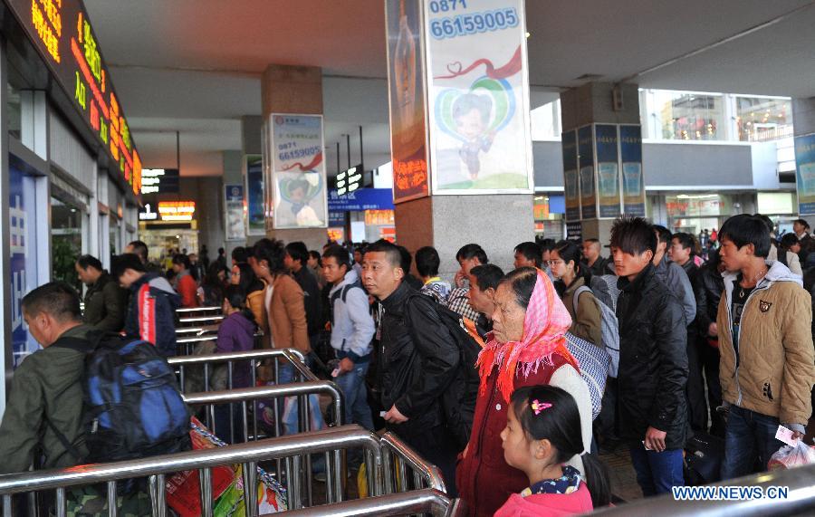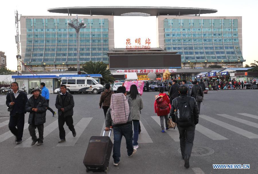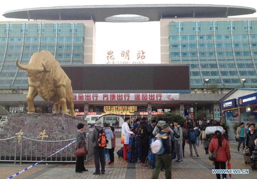 Photo taken with a cell phone on March 2, 2014 shows people on the square of the Kunming Railway Station in Kunming, capital of southwest China's Yunnan Province. The order at the railway station has been restored to normal after an overnight terrorist attack which left 29 people dead and 130 others injured. (Xinhua/Lin Yiguang)