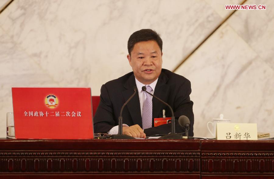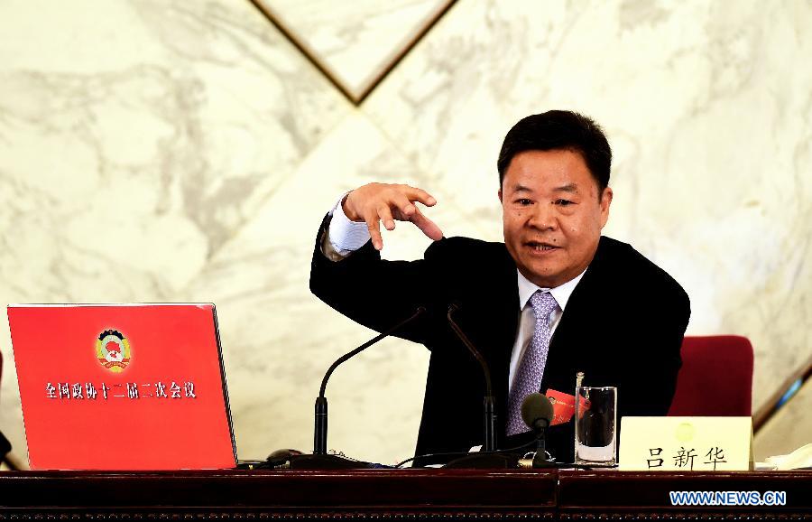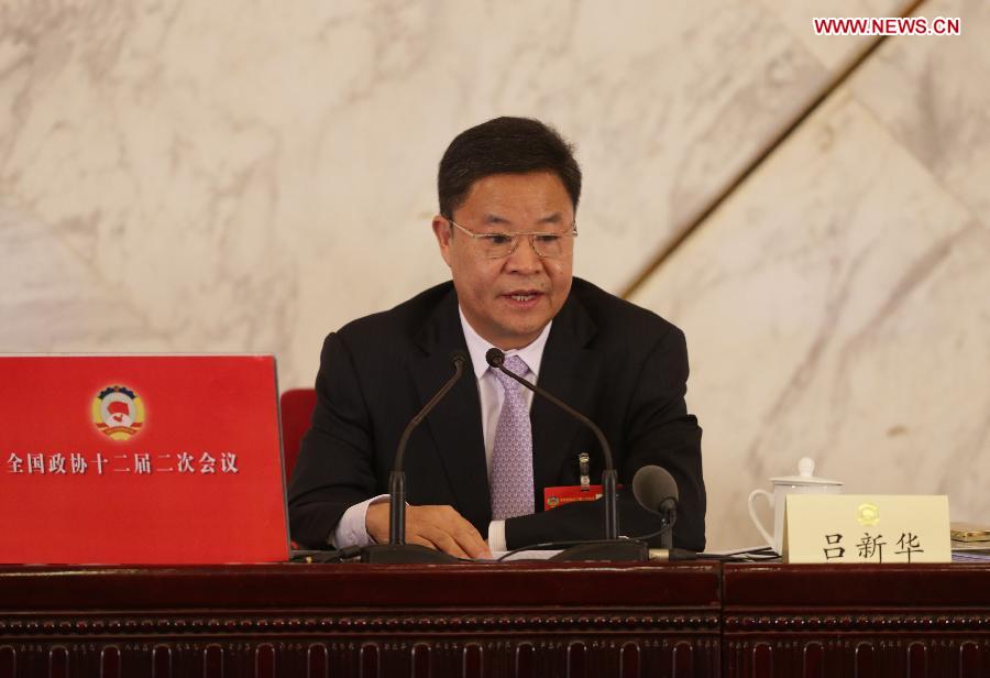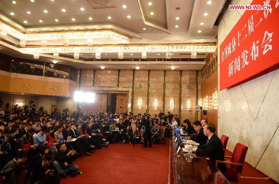 Photo taken on March 2, 2014 shows the scene of a press conference on the second session of the 12th Chinese People's Political Consultative Conference (CPPCC) National Committee, in Beijing, capital of China. The second session of the 12th National Committee of CPPCC, the national advisory body, is scheduled to open in Beijing on March 3. (Xinhua/Jin Liwang)