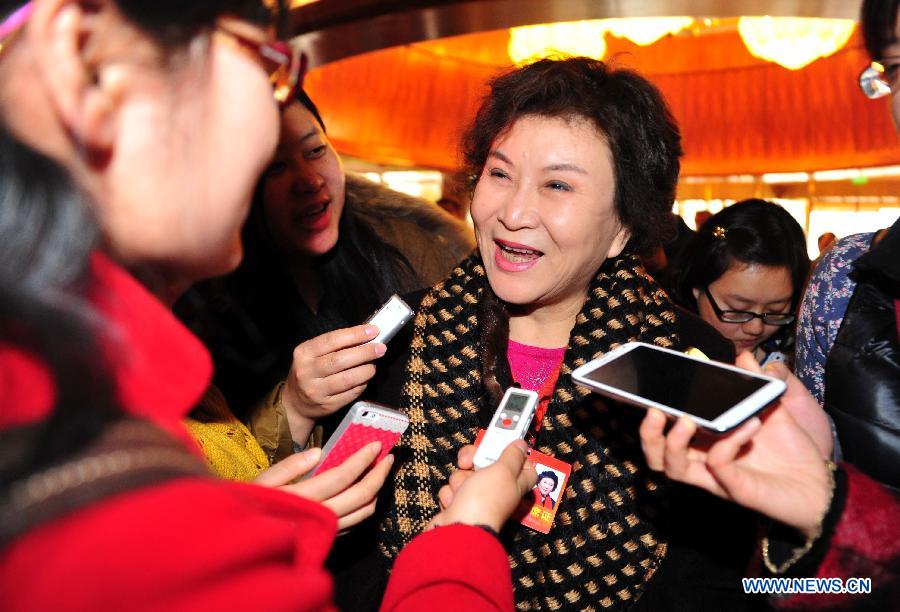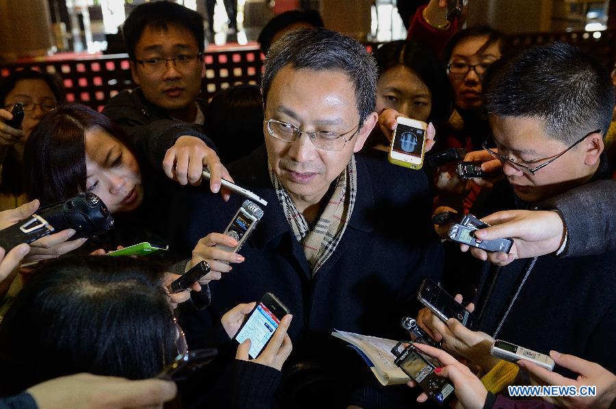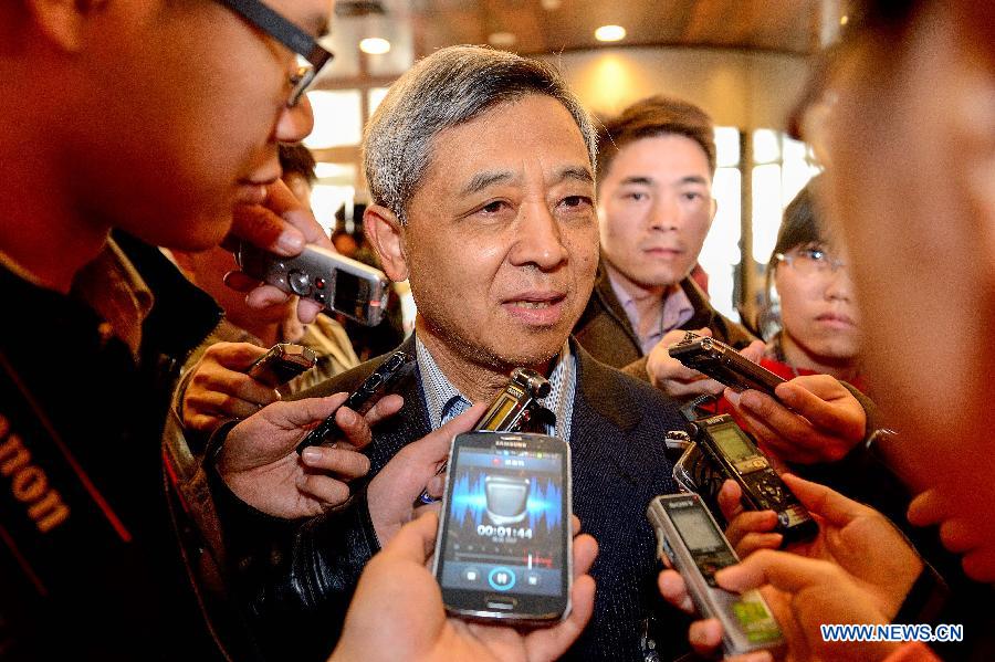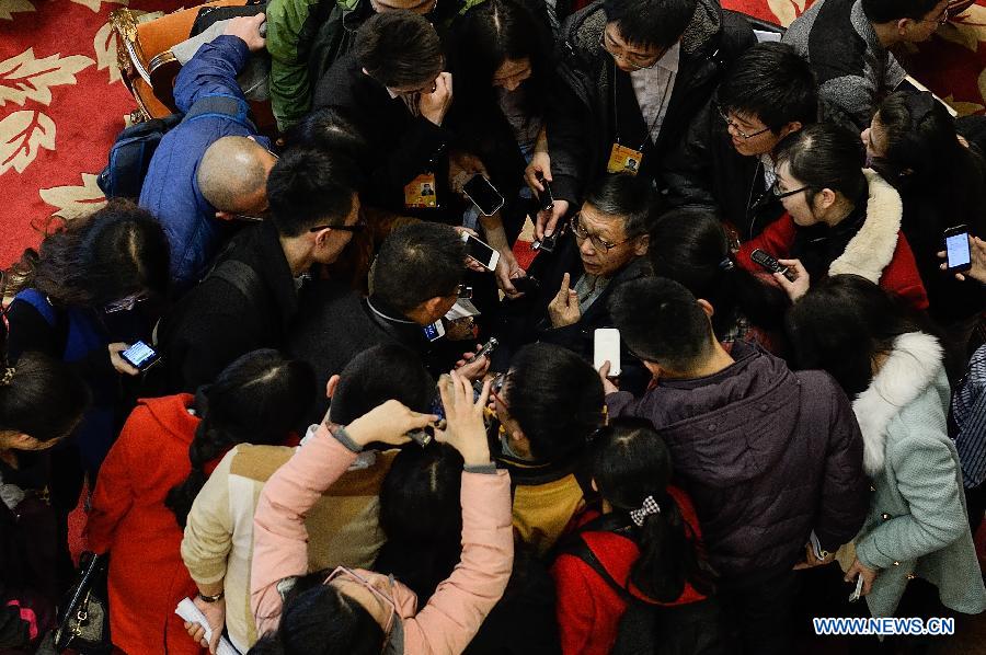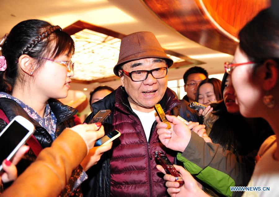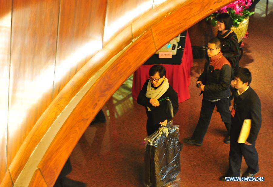 Actor Jackie Chan (L), a member of the 12th National Committee of the Chinese People's Political Consultative Conference (CPPCC), arrives at Beijing International Hotel in Beijing, capital of China, March 2, 2014. The second session of the 12th National Committee of the CPPCC, the national advisory body, will open on March 3. (Xinhua/Xiao Yijiu)