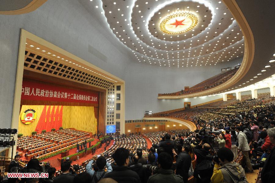 The second session of the 12th National Committee of the Chinese People's Political Consultative Conference (CPPCC), the national advisory body, opens at the Great Hall of the People in Beijing, capital of China, March 3, 2014. (Xinhua/Xing Guangli)v