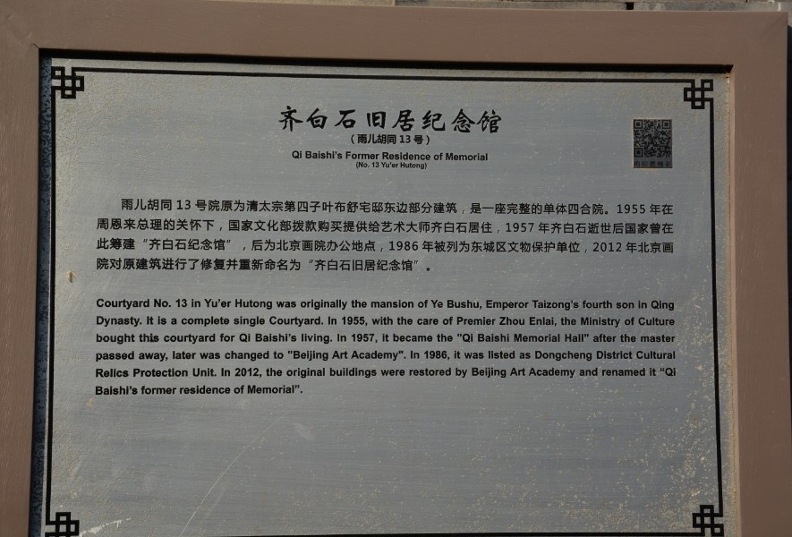 Yu'er Hutong is a 343-meter-long hutong located in the northwest of Dongcheng District, Beijing. On Feb 25, 2014, Chinese President Xi Jinping paid a visit to the alleyway when he was inspecting Nanluoguxiang Hutong area, a popular tourist spot famous for its boutiques, snack shops and bars. Yu'er Hutong stretches from Nanluoguxiang in the east and ends at Dongbuyaqiao Hutong in the west. Mao'er Hutong lies to its north and Suoyi Hutong to its south. It's home to the former residences of well-established Chinese painter Qi Baishi, Marshal Luo Ronghuan and General Su Yu. The Zhinian Banner Government, an official body of the Eight Banners during the Qing Dynasty, was located here. [File photo]