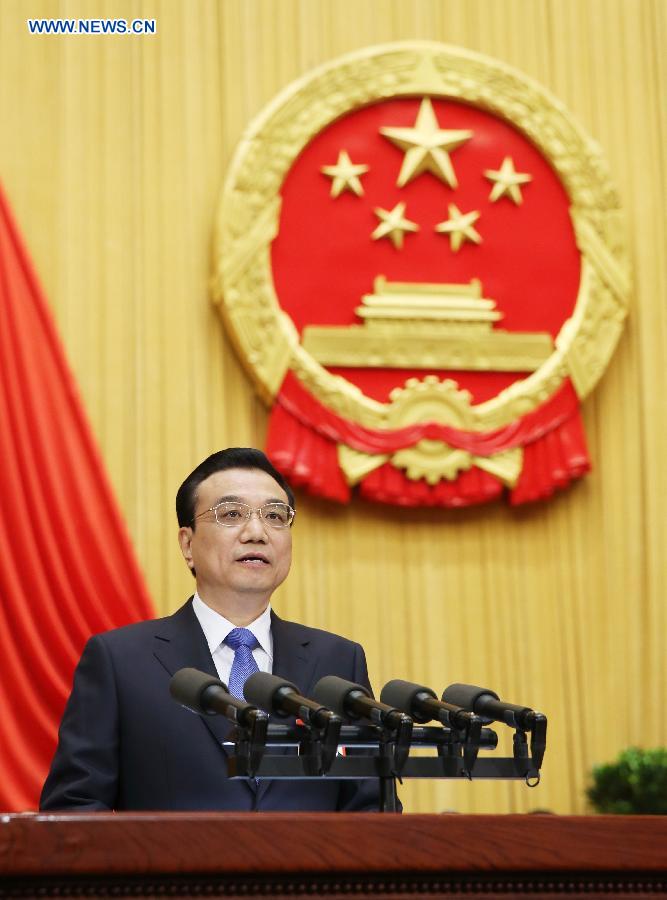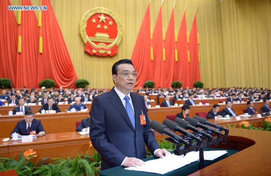 Chinese Premier Li Keqiang delivers the government work report during the opening meeting of the second session of the 12th National People's Congress (NPC) at the Great Hall of the People in Beijing, capital of China, March 5, 2014. (Xinhua/Yao Dawei)