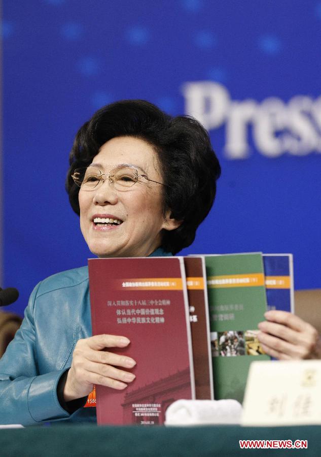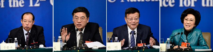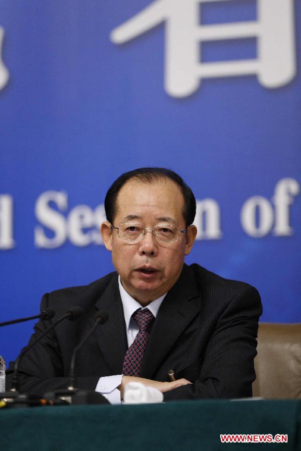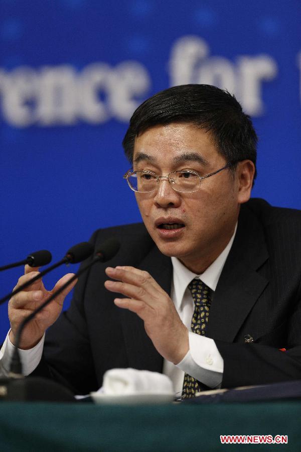 Bian Jinping, a member of the 12th National Committee of the Chinese People's Political Consultative Conference (CPPCC), speaks at a press conference on consultative democracy during the second session of the 12th CPPCC National Committee in Beijing, capital of China, March 7, 2014. (Xinhua/Shen Bohan)