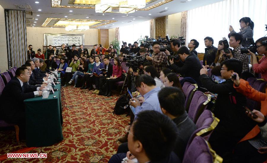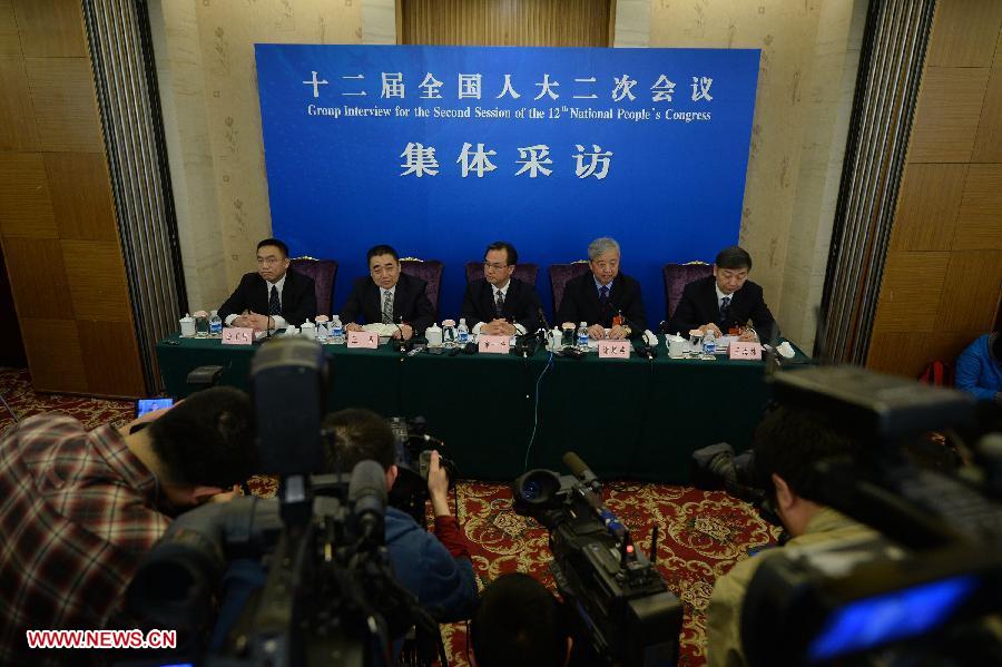 Four deputies to China's National People's Congress (NPC) give a press conference for the second session of the 12th NPC on industrial restructuring in Beijing, capital of China, March 10, 2014. (Xinhua/Xiao Yijiu)