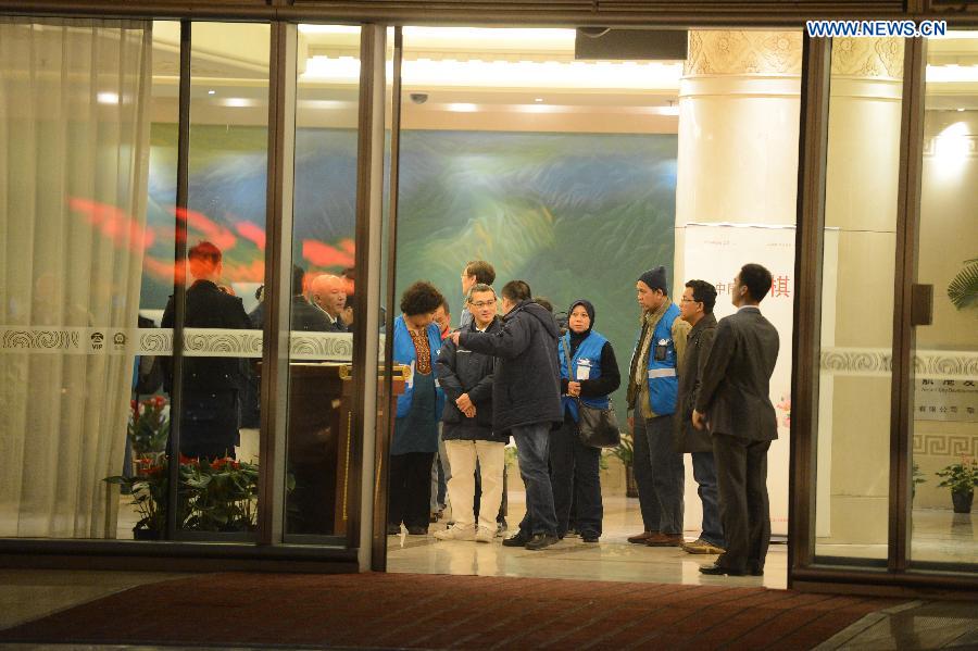 Relatives of passengers aboard the missing Malaysia Airlines flight MH370 check in before boarding a flight bound for Kuala Lumpur at Capital International Airport in Beijing, capital of China, early March 11, 2014. Some of the relatives of passengers aboard the missing Malaysia Airlines flight MH370 left Beijing for Kuala Lumpur early on Tuesday. (Xinhua/Jiang Kehong)