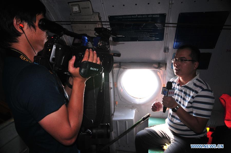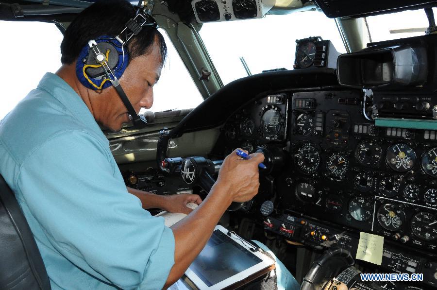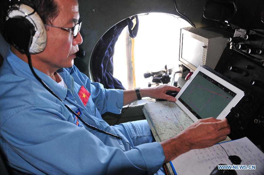 Reporters work on a Vietnam Air Force aircraft which searches for the missing Malaysia Airlines flight MH370 off Vietnam's southern coastline, March 11, 2014. Vietnam is to further widen the search for the missing Malaysia Airlines passenger plane in cooperation with other countries involved, the chief coordinator of the country's search and rescue mission said Tuesday. (Xinhua/Tao Jun)