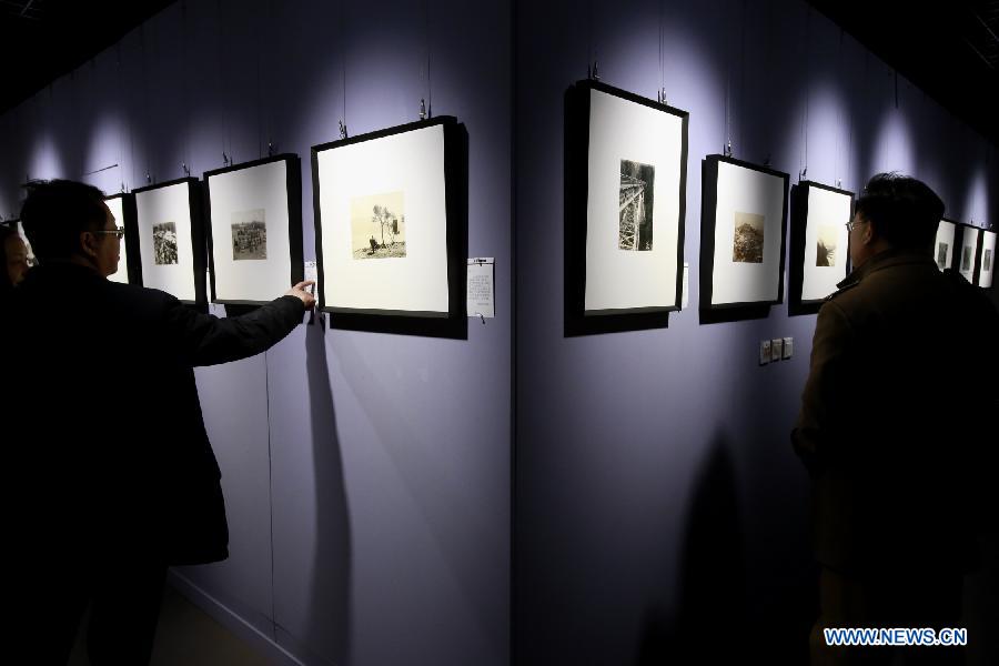 Visitors view exhibits during an image data preview themed on Japanese aggressions of China from 1894 to 1945, in Beijing, capital of China, March 12, 2014. The exhibition displayed more than 100 photos and hundreds of newspapers, magazines and pictorials originally from Japanese government, military, research institutes, scholars, explorers, media and private albums of Japanese invading troops. (Xinhua/Li Mingfang)