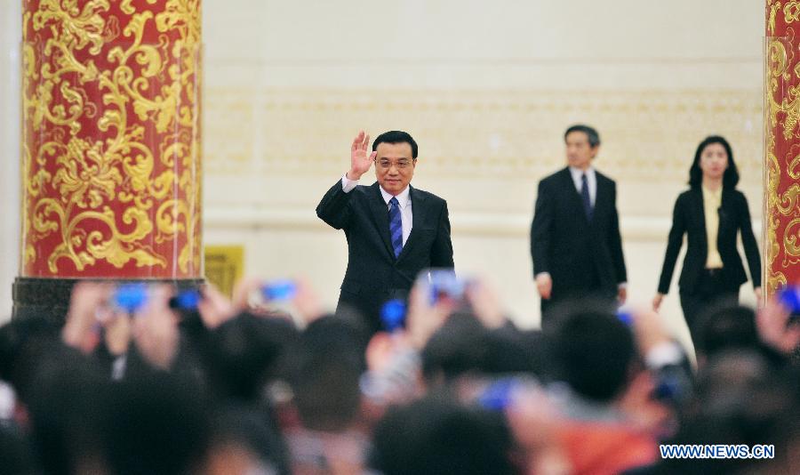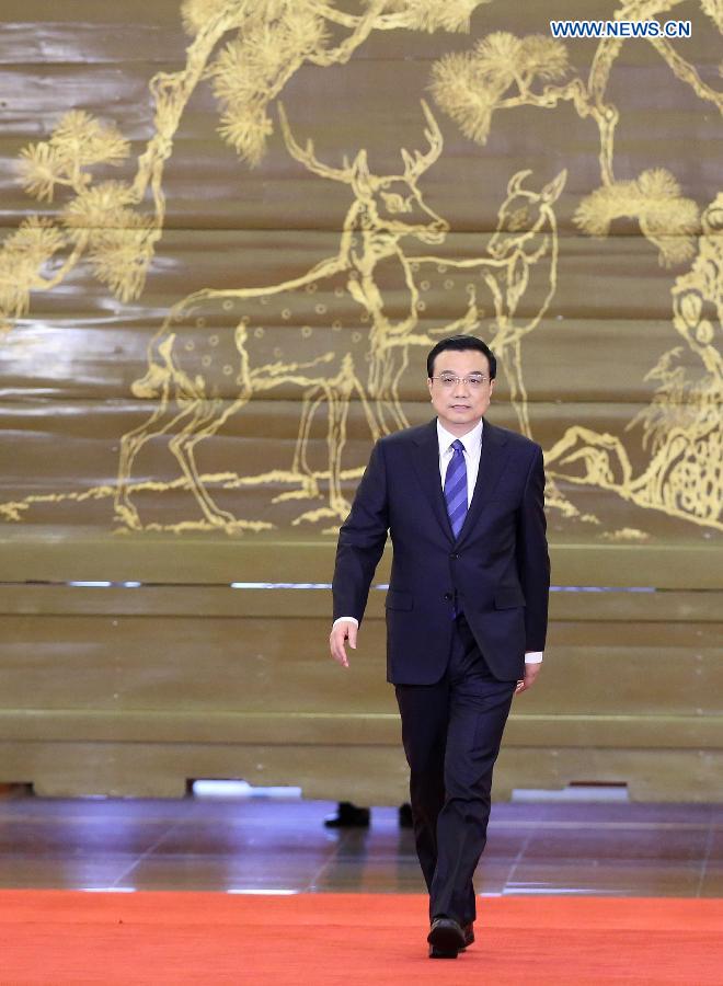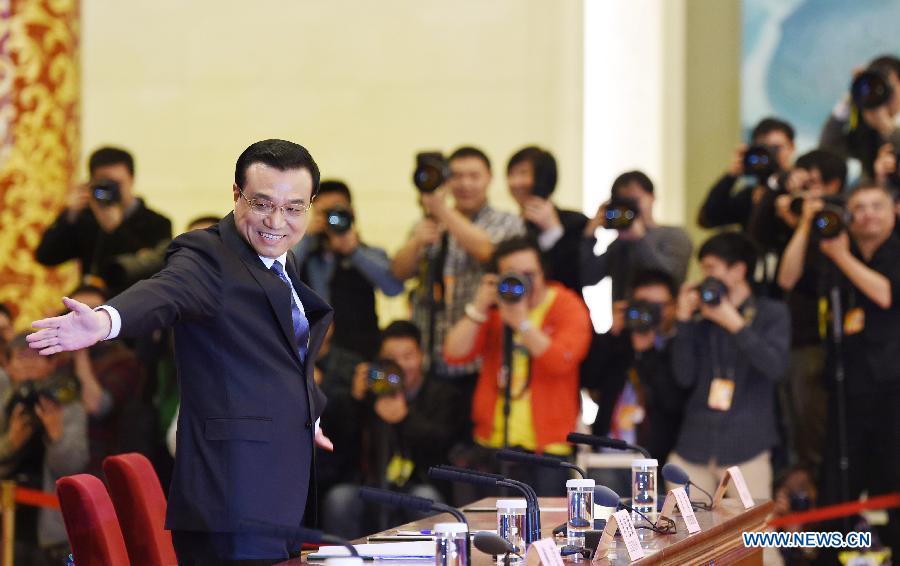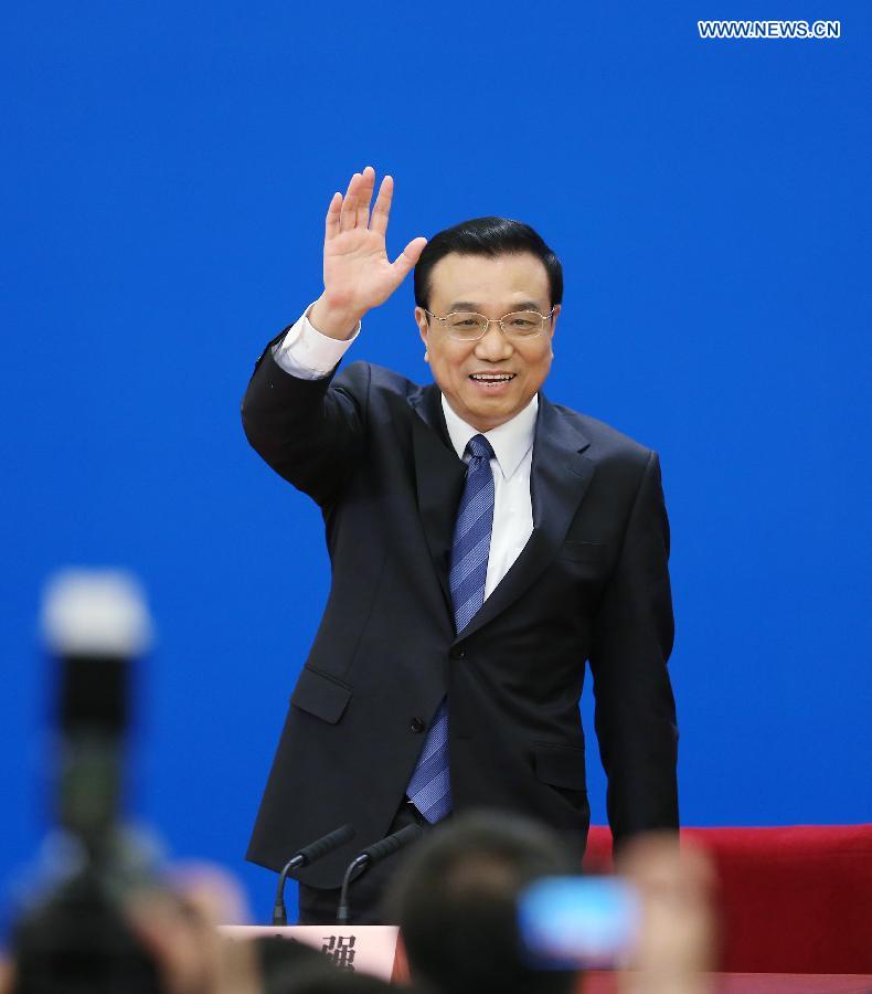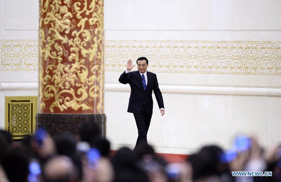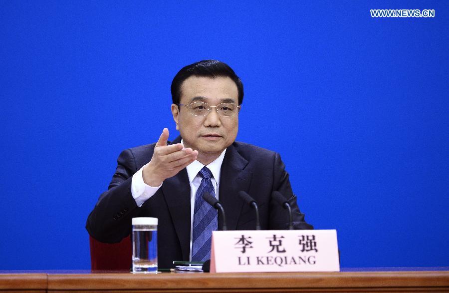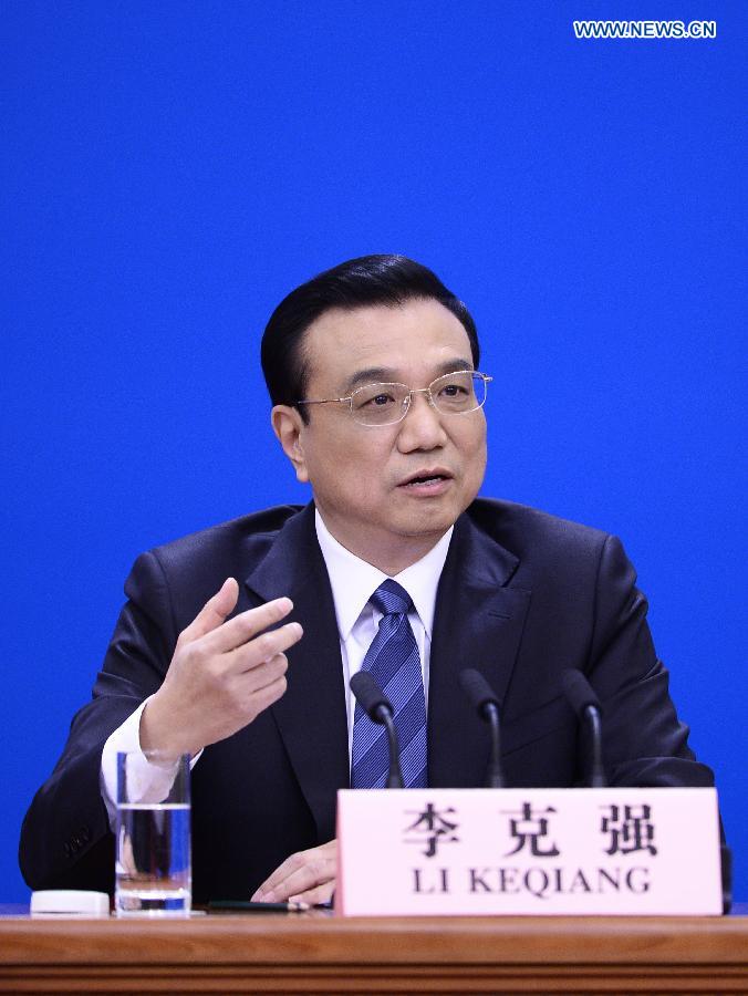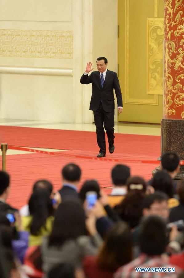 Chinese Premier Li Keqiang speaks at a press conference after the closing meeting of the second annual session of China's 12th National People's Congress (NPC) at the Great Hall of the People in Beijing, capital of China, March 13, 2014. (Xinhua/Chen Jianli)