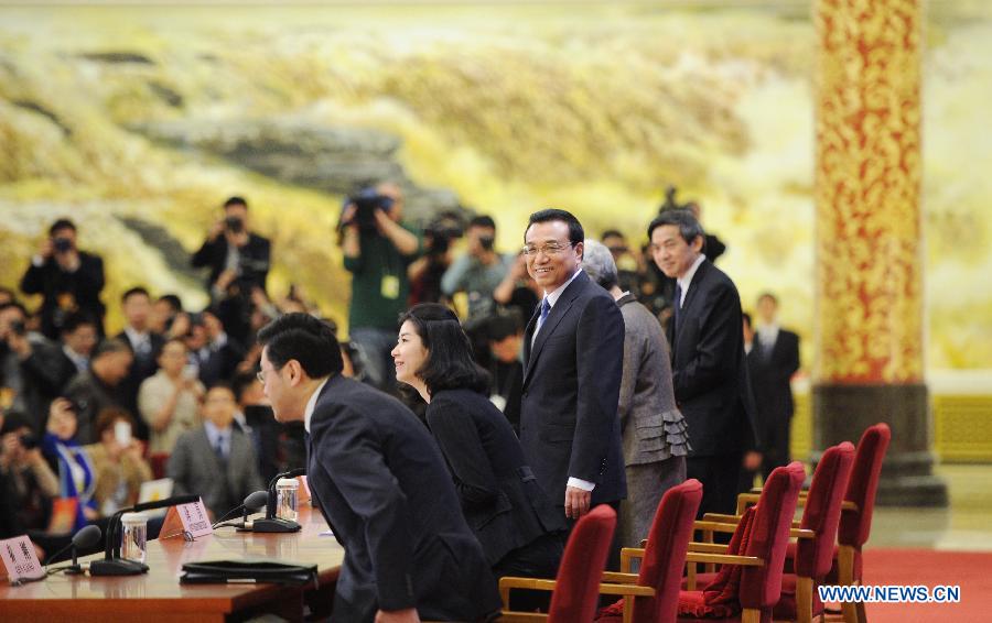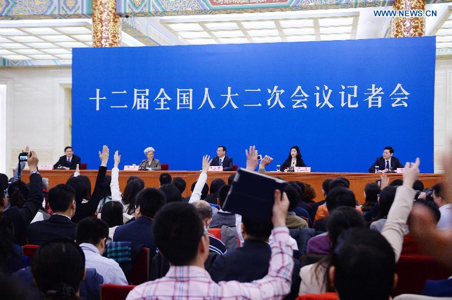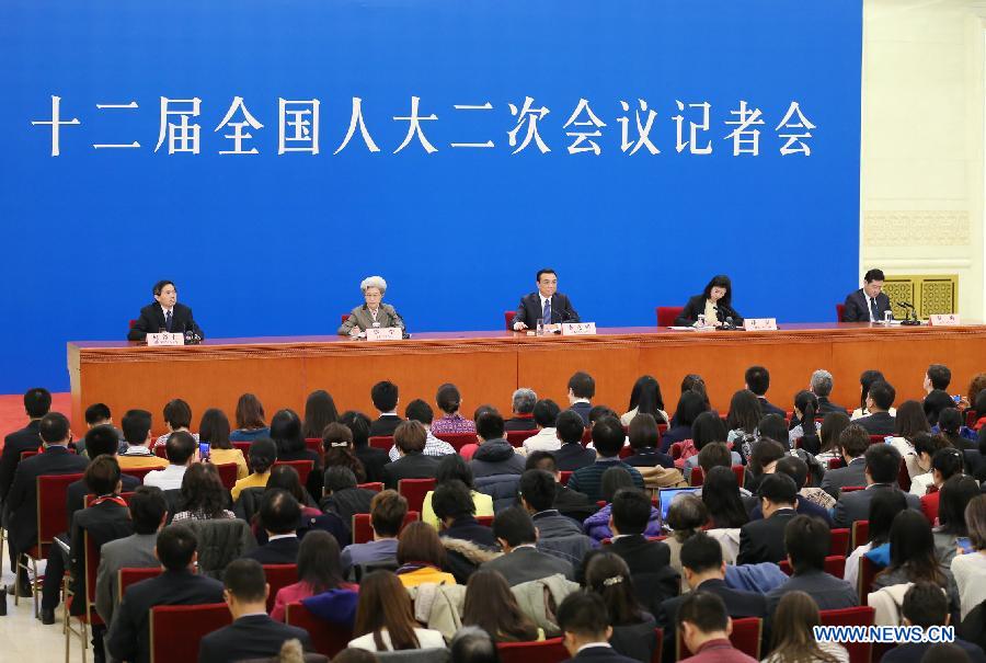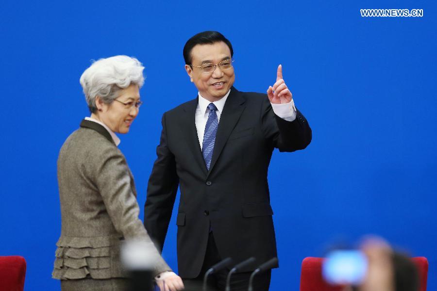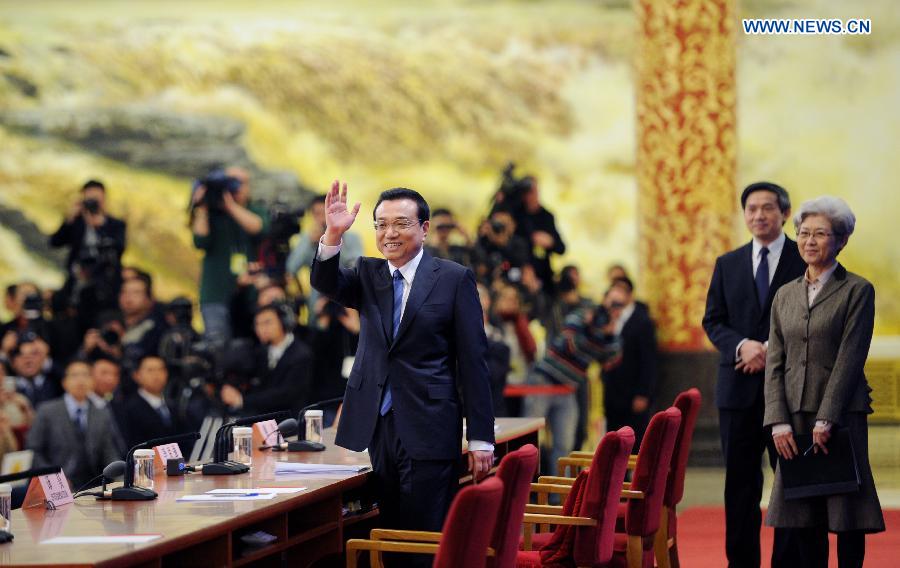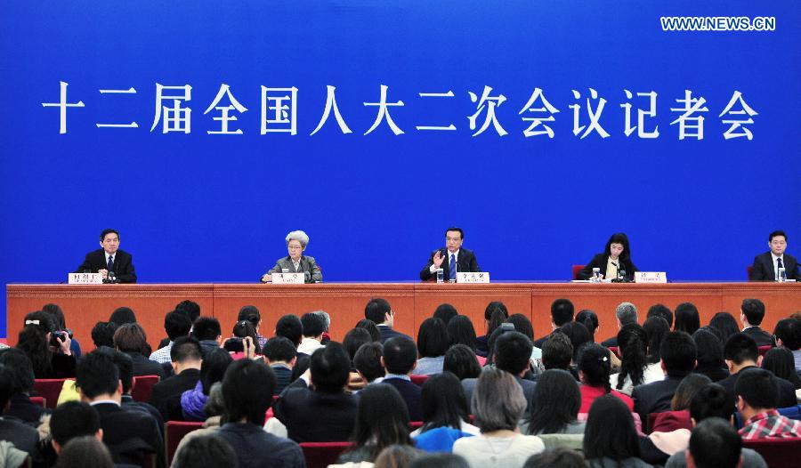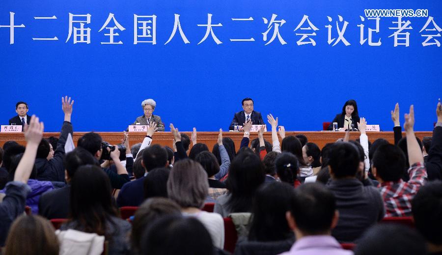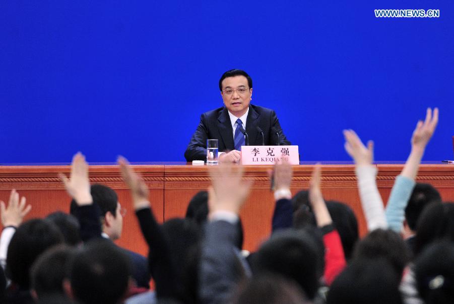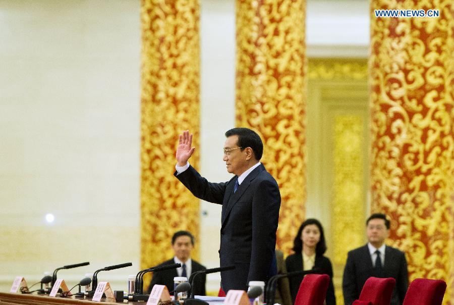 Chinese Premier Li Keqiang speaks at a press conference after the closing meeting of the second annual session of China's 12th National People's Congress (NPC) at the Great Hall of the People in Beijing, capital of China, March 13, 2014. (Xinhua/Chen Jianli)