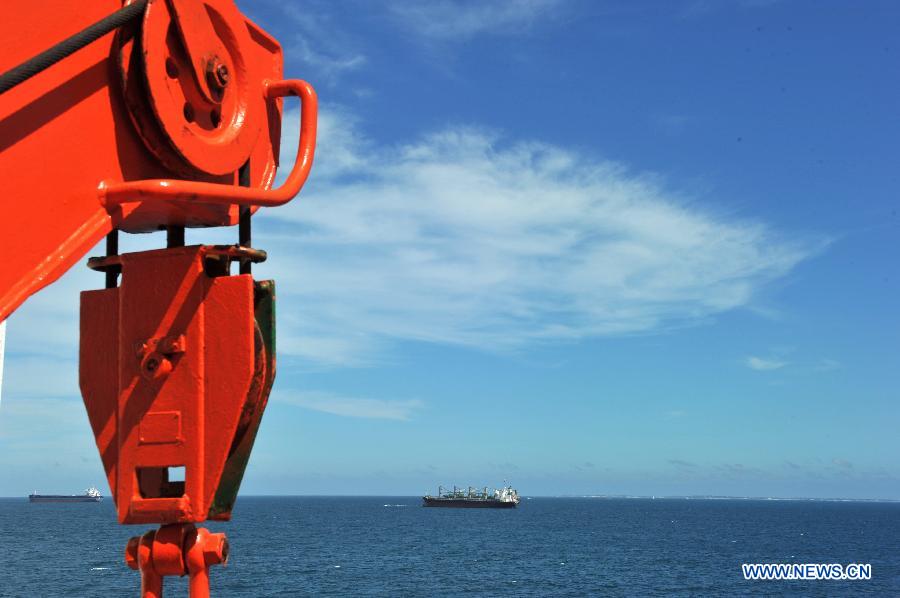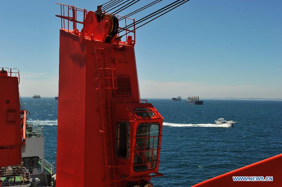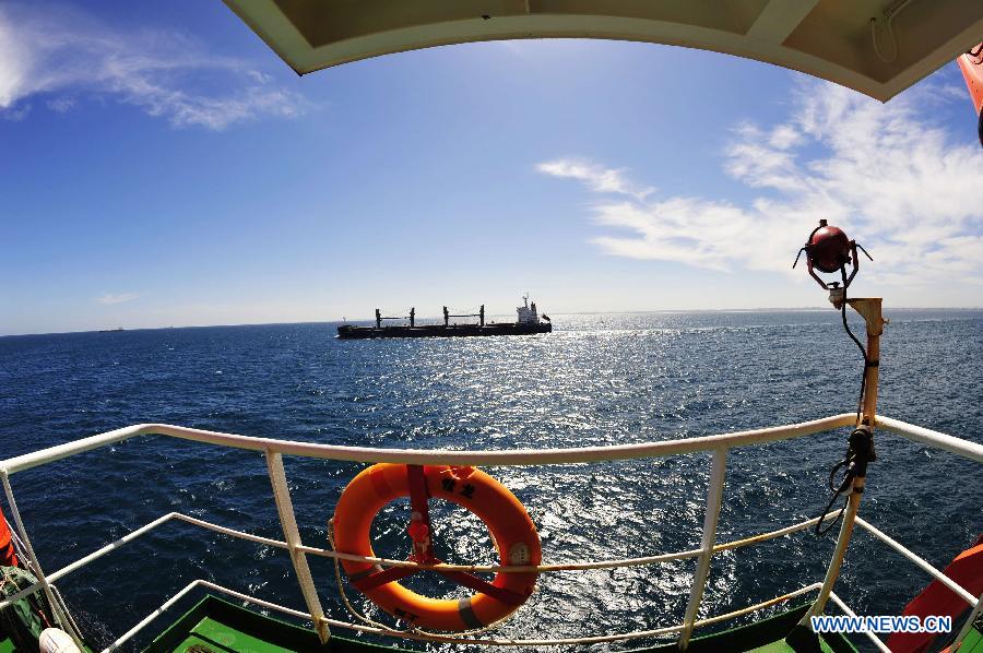 Chinese research vessel and icebreaker Xuelong arrives at Fremantle, Australia, March 17, 2014. After 11 days of sailing, Xuelong anchored at Fremantle on Monday for replenishment. (Xinhua/Zhang Jiansong)