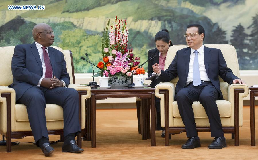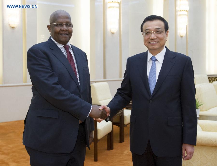 Chinese Premier Li Keqiang (R) meets with visiting Ugandan Foreign Minister Sam Kutesa in Beijing, capital of China, March. 18, 2014. (Xinhua/Huang Jingwen)