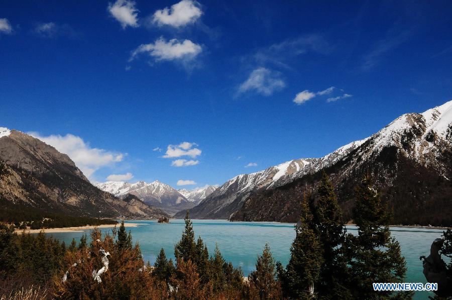 Photo taken on March 18, 2014 shows the scenery of the Ranwu Lake in Basu County, southwest China's Tibet Autonomous Region. The Ranwu Lake stands at an altitude of 3,850 meters with an acreage of 22 square kilometers. (Xinhua/Wang Shoubao)