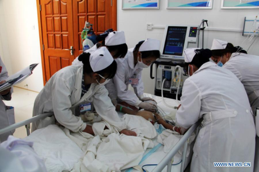 A child showing symptoms of possible food poisoning receives medical treatment in hospital in Qiubei County, Wenshan Zhuang-Miao Autonomous Prefecture, southwest China's Yunnan province, March 20, 2014. Suspected food poisoning in Jiajia Kindergarten in Pinglong Village killed two pupils and left 30 hospitalized on Wednesday. (Xinhua)