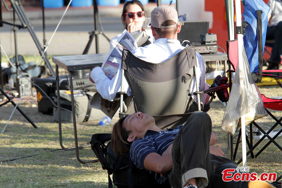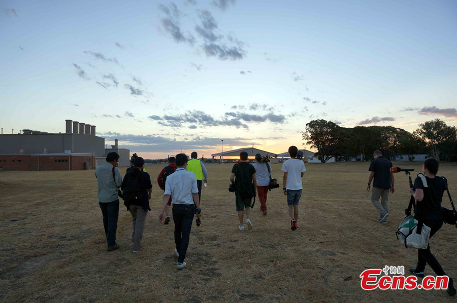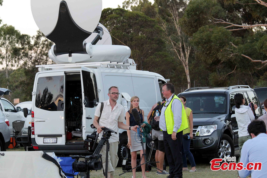 Photo taken on March 25, 2014 shows journalists in Perth of Western Australia await news about the missing Malaysian Airlines Flight MH370. Malaysian Prime Minister announced on Monday night that the plane had gone down in the southern Indian Ocean. [Photo: China News Service / Hong Shaokui]