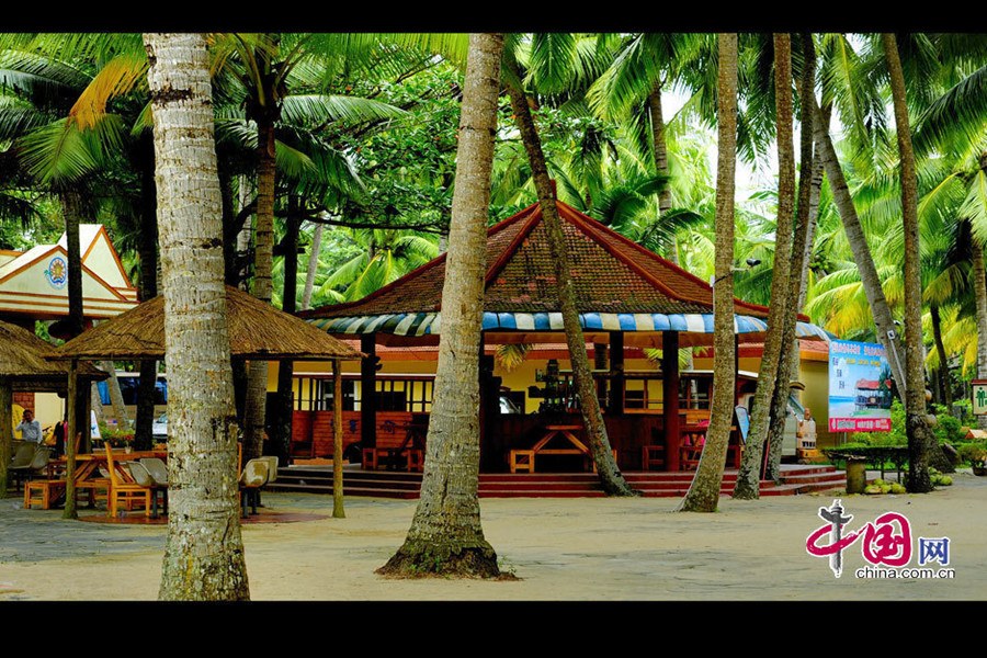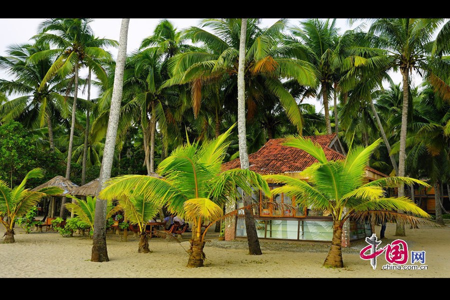Local farmers can climb 20 meters coconut trees very fast to give visitors fresh coconut juice. [China.org.cn]