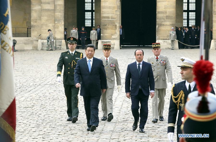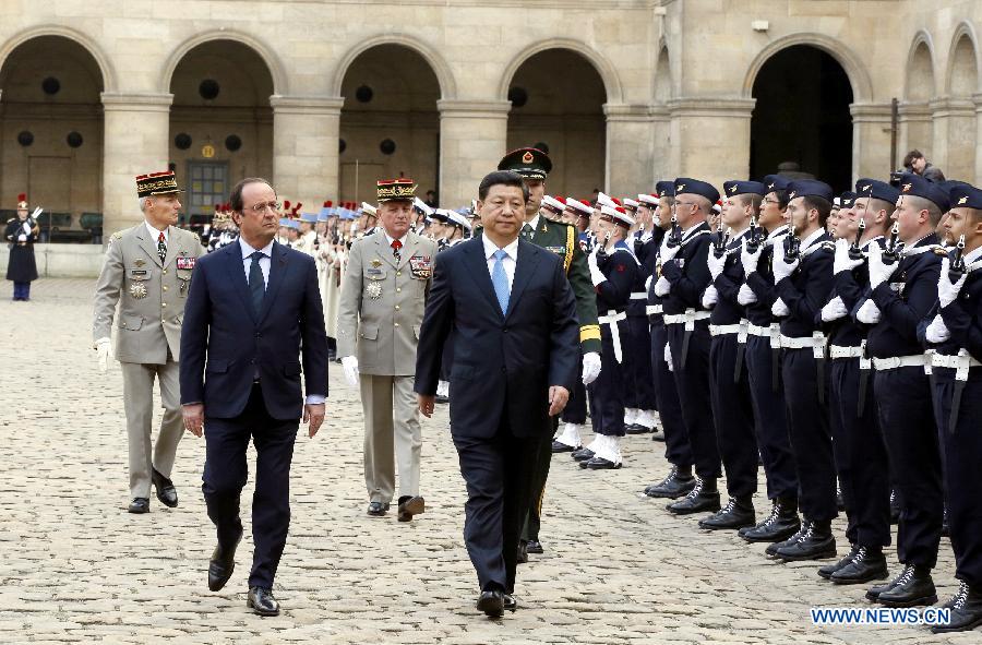 Chinese President Xi Jinping (L) meets with his French counterpart Francois Hollande in Paris, capital of France, March 26, 2014. (Xinhua/Lan Hongguang)