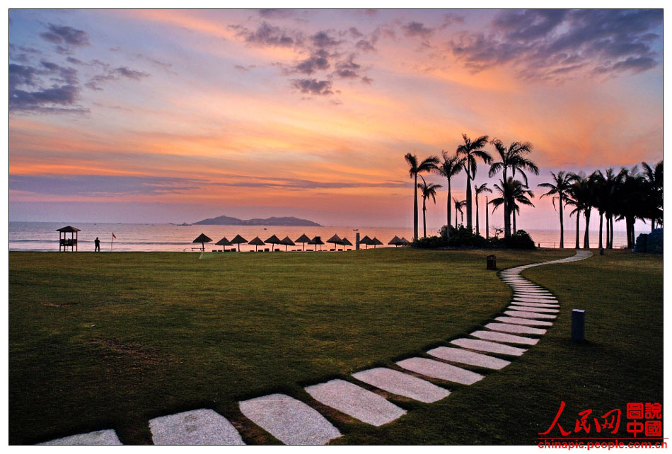 Compared with developed resort zones like Yalong Bay, Dadonghai Bay, and Sanya Bay, Haitang Bay is still a virgin land restraining its unspoiled pristine beauty, with a coastline of 22 kilometers. (Chinapic.people.com.cn)