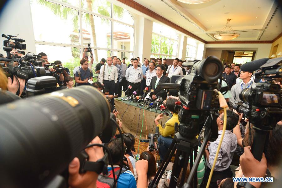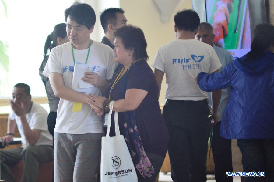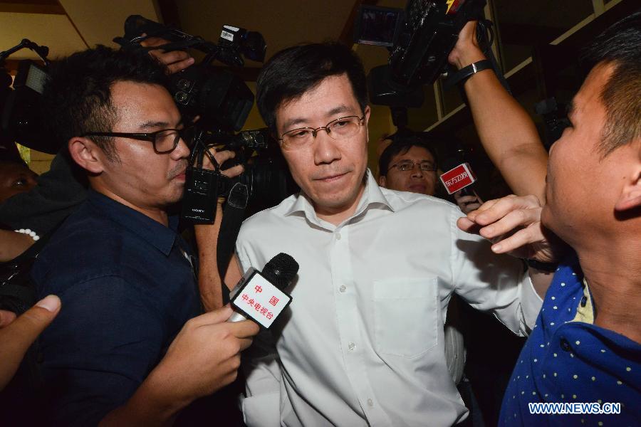 Head of the Chinese government joint working group Guo Shaochun speaks to the media in a hotel, 40 km from Kuala Lumpur, Selangor, Malaysia, April 2, 2014. Malaysian Civil Aviation Department and Malaysian Airlines held a press conference for Chinese relatives of passengers on board the missing Malaysia Airlines Flight MH370 here Wednesday. (Xinhua/Chong Voon Chung)