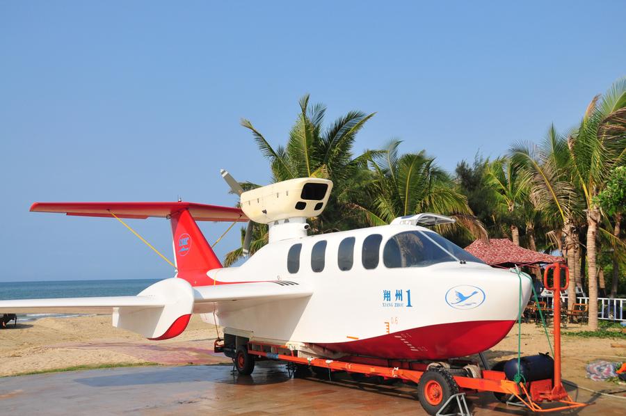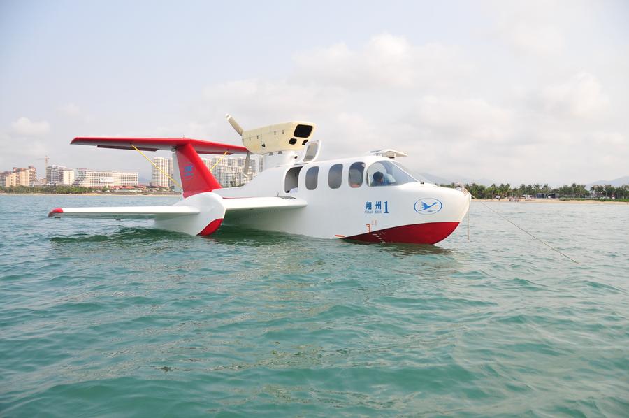 China's first commercial "sea airship," Xiangzhou 1, floats on the water in Sanya, Hainan province. Xiangzhou 1 received its airworthiness certification from China's Classification Society on Thursday and will soon be put into commercial use. [Photo/Xinhua]