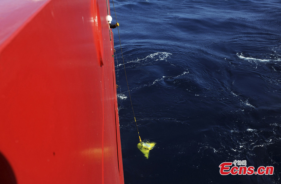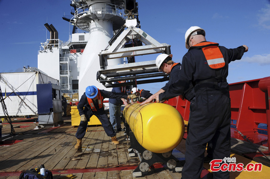 Undated photo shows that US black box locator is put into test for searching the missing Malaysia Airlines Flight MH370 in South India Ocean. [Photo: agencies]