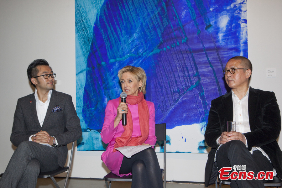 The joint exhibition "Abstraction – Ingeborg zu Schleswig-Holstein and Shan Fan" announced its grand opening at Beijing's Today Art Museum on Thursday afternoon. The exhibition will last till April 12. The photo shows Gao Peng, Today Art Museum's curator, Ingeborg zu Schleswig-Holstein, and Gao Fan (from left to right) answer questions at Thursday's press conference. (Photo provided to Ecns)