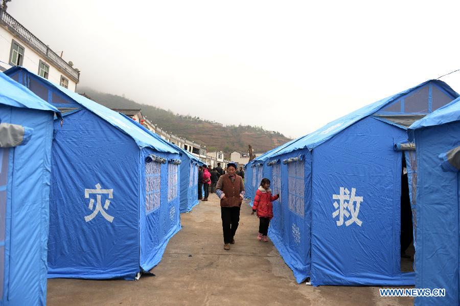 A victim receives treatment at a hospital in Yongshan County, southwest China's Yunnan Province, April 5, 2014. At least 25 people were injured and 21,000 relocated when a 5.3-magnitude earthquake stuck Yongshan early on Saturday. (Xinhua/Hu Chao)