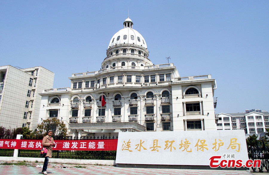 Photo taken on April 7, 2014 shows a replica of United States Capitol building in a county of east China’s Jiangsu province. It is the official building of the local environmental protection bureau. [Photo: CNSPHOTO]