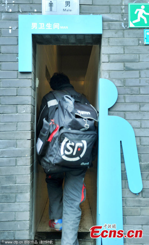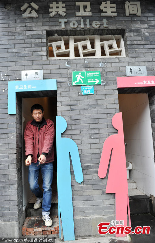 Photo taken on April 7, 2014 shows two narrow doors of a public toilet in Chengdu, capital city of Sichuan province. The doors, about 0.5 meters in width, only allow one man to get through. [Photo: CFP]