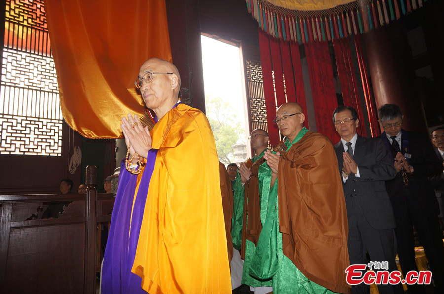 Monks from China and Japan pray for world peace at Lingyin Temple (1/5)