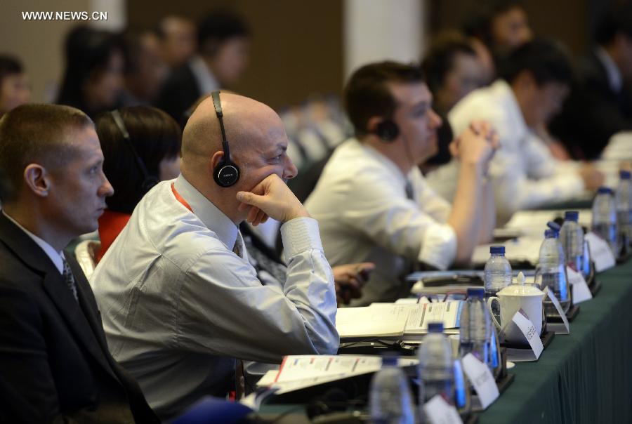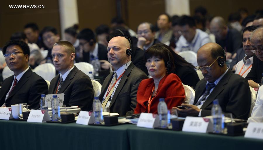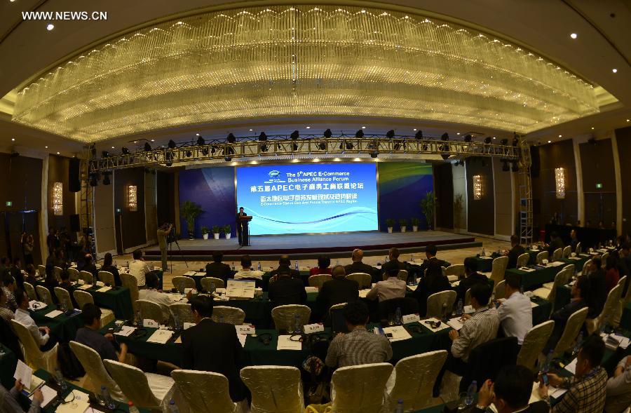 Guests take part in the 5th Asia-Pacific Economic Cooperation (APEC) E-Commerce Business Alliance Forum in Yiwu, east China's Zhejiang province, April 10, 2014. The forum was themed on "E-commerce status quo and the future trend in APEC region". (Xinhua/Han Chuanhao)